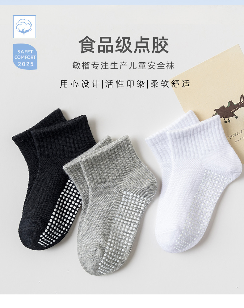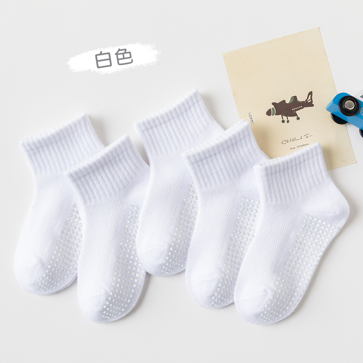 어린 이용 미끄럼 방지 양말 단색 바닥 양말 봄과 여름 메쉬 얇은 통기성 높은 고무 스트랜드 실내 양말 소년 소녀 짧은 양말