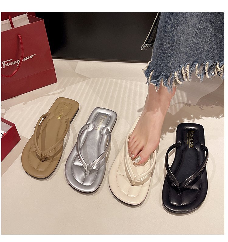 인터넷 기념 플립 플롭 여성 의상 여름 유행 플랫 플립 플롭 안티 슬립 2025 새로운 스타일 플립 플롭 해변 신발
