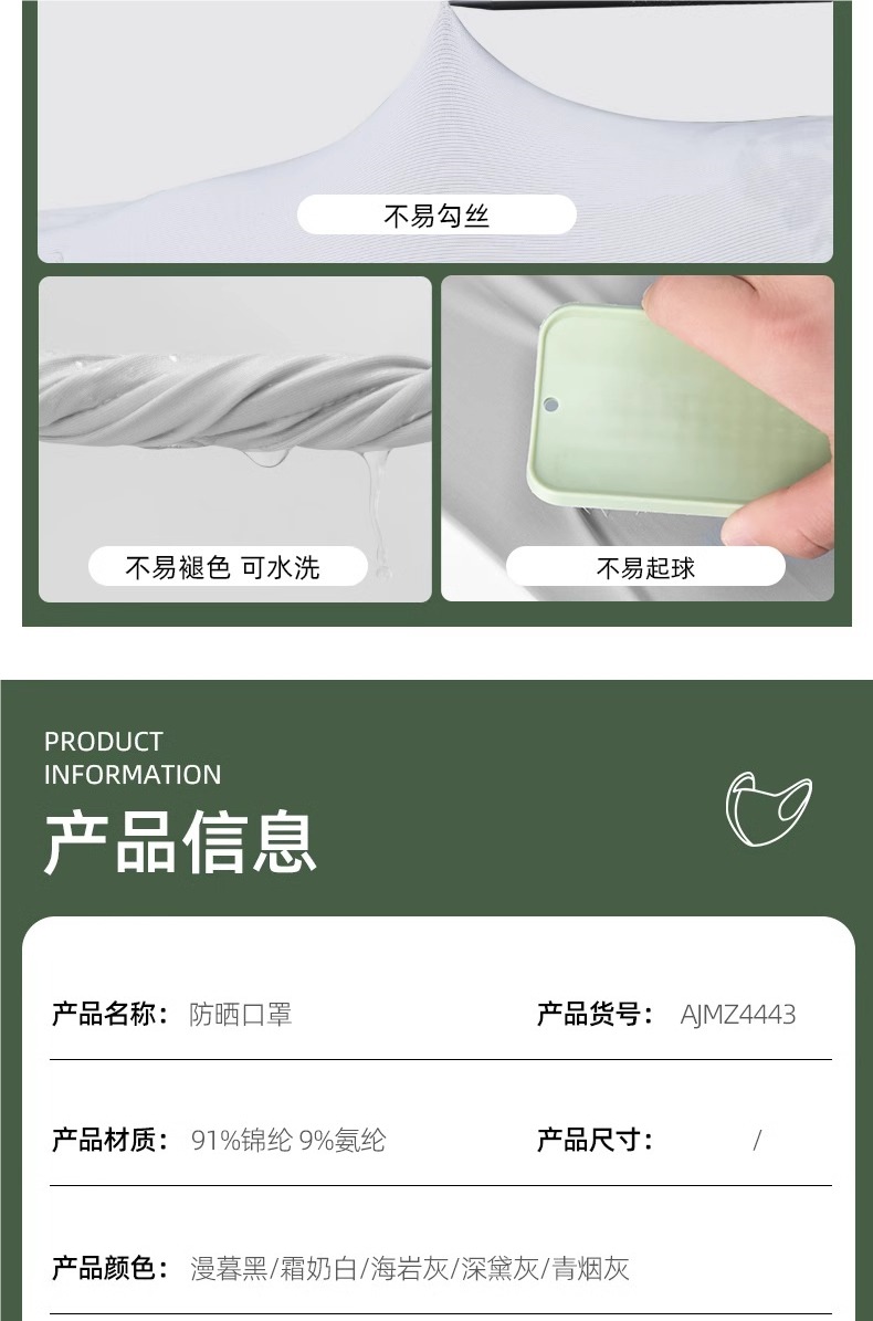 • 풀페이스 자외선 차단제/UPF50+ [그린 스모크 그레이]
