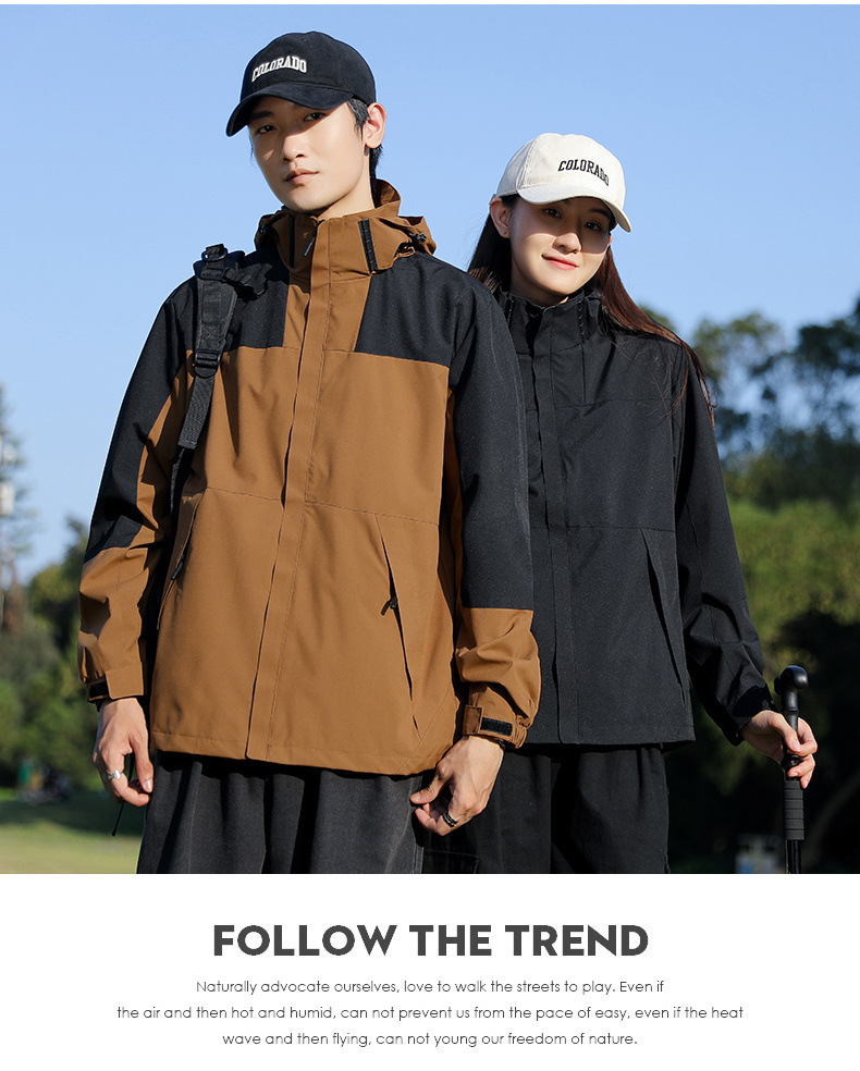 국경 간 가을 새로운 스타일 남성 야외 등산 여행 방풍 방수 유행 후드 재킷 커플 재킷
