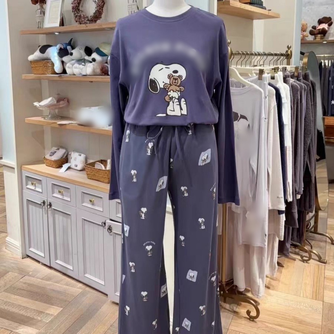 gp 무라벨 오리지널 남성용 부드러운 아이스크림 스누피 프린트 소프트 라운드넥 긴팔 잠옷 커플 홈웨어스토어 가기