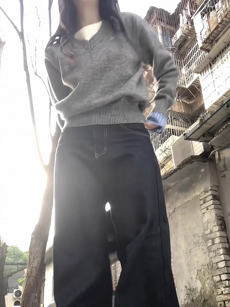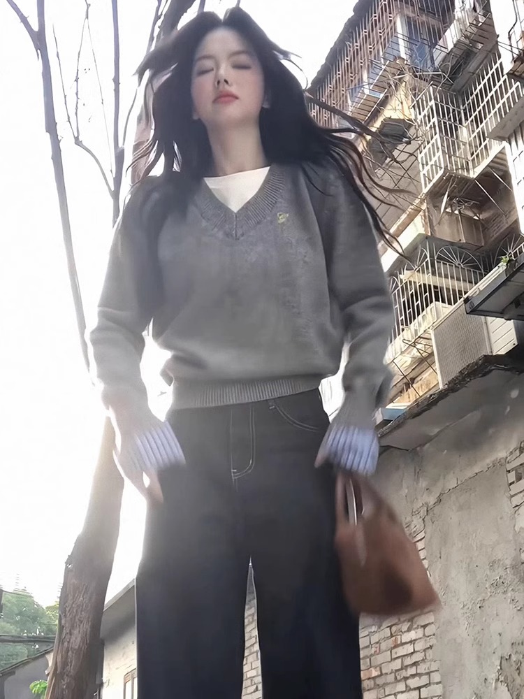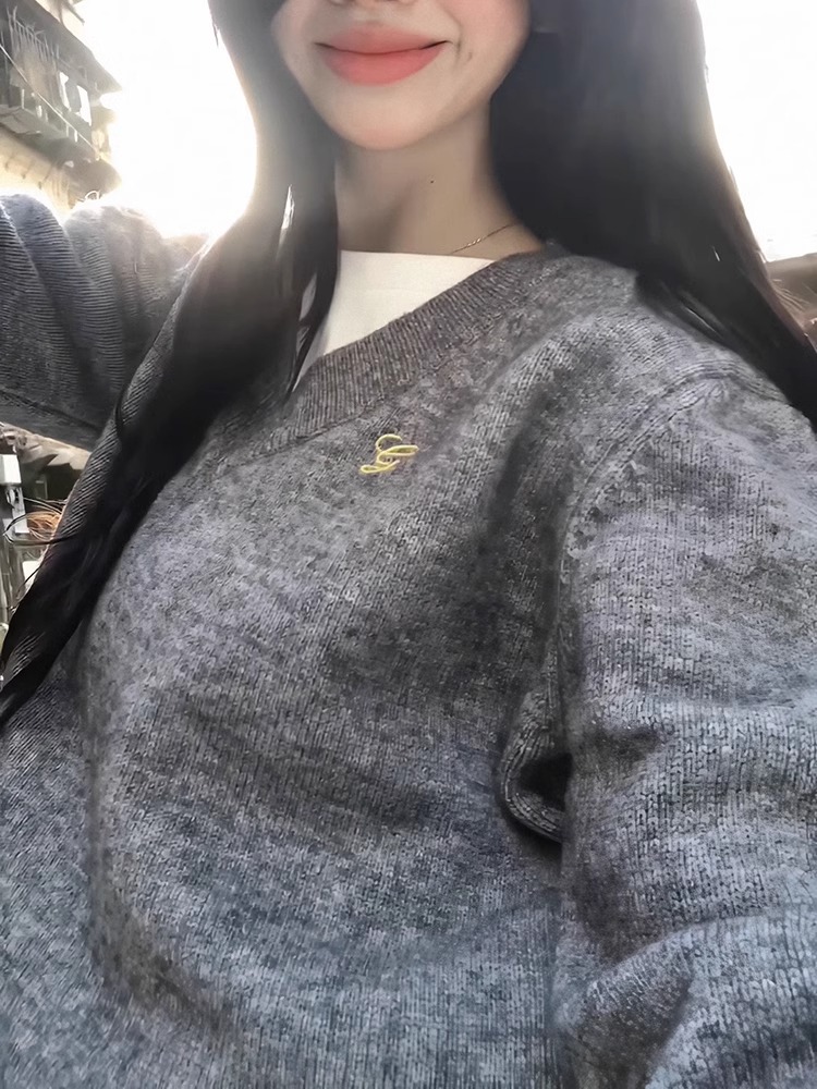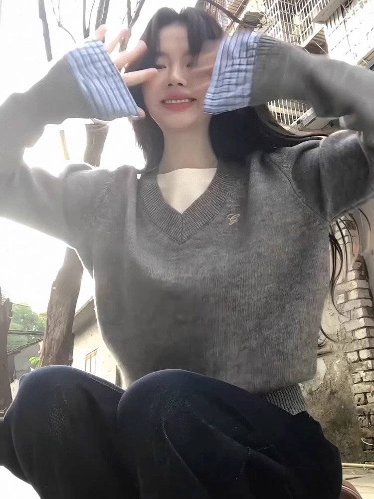 가짜 투피스 게으른 스타일 스웨터 내면베이스가있는 여성용 가을 및 겨울복 긴팔 탑 루즈 코트 그레이 스웨터스토어 가기