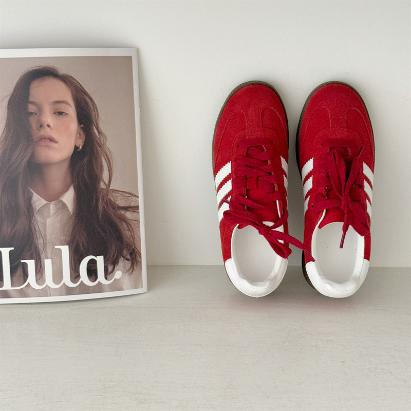 레드 정품 가죽 독일 훈련 신발 여성 2025 년 새 여름 올 매치 레트로 보드 신발 두꺼운 단독 폭발 캐주얼 운동화 여성스토어 가기