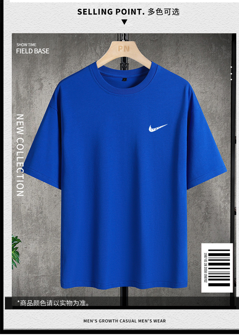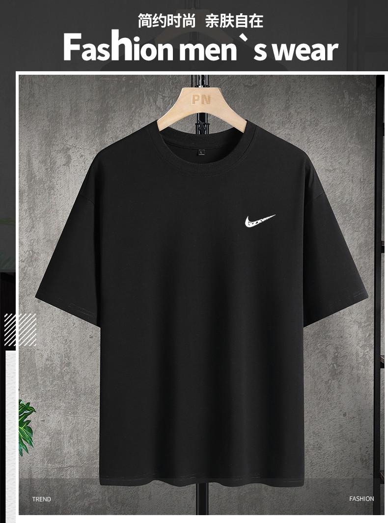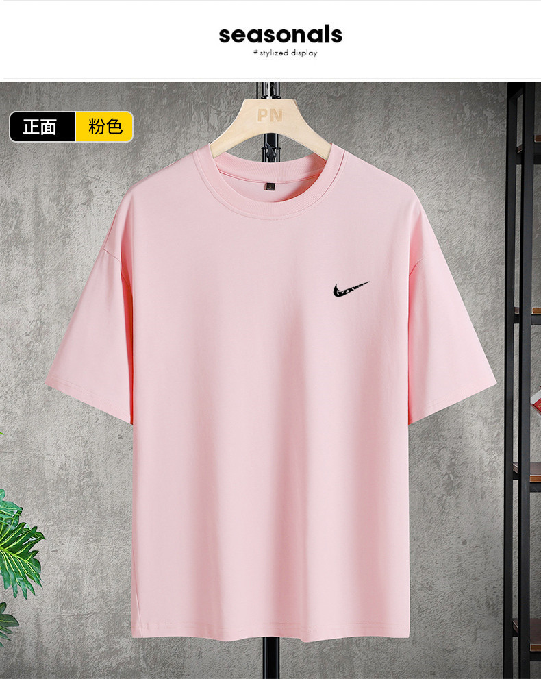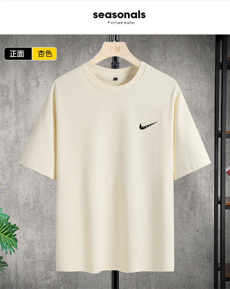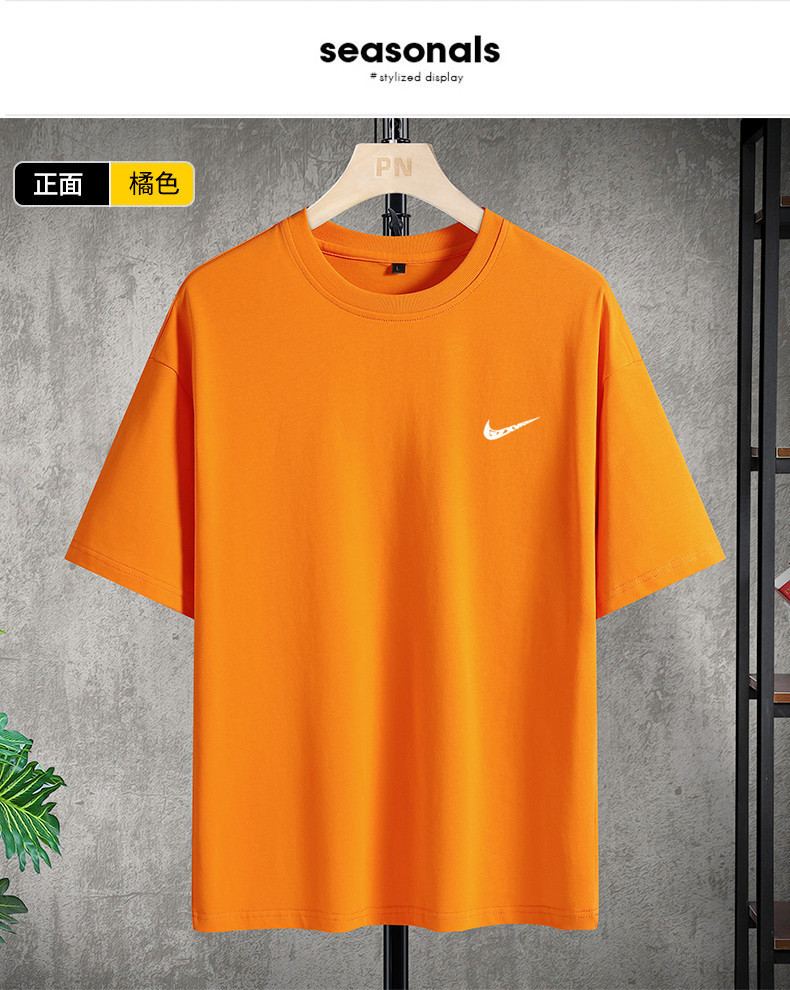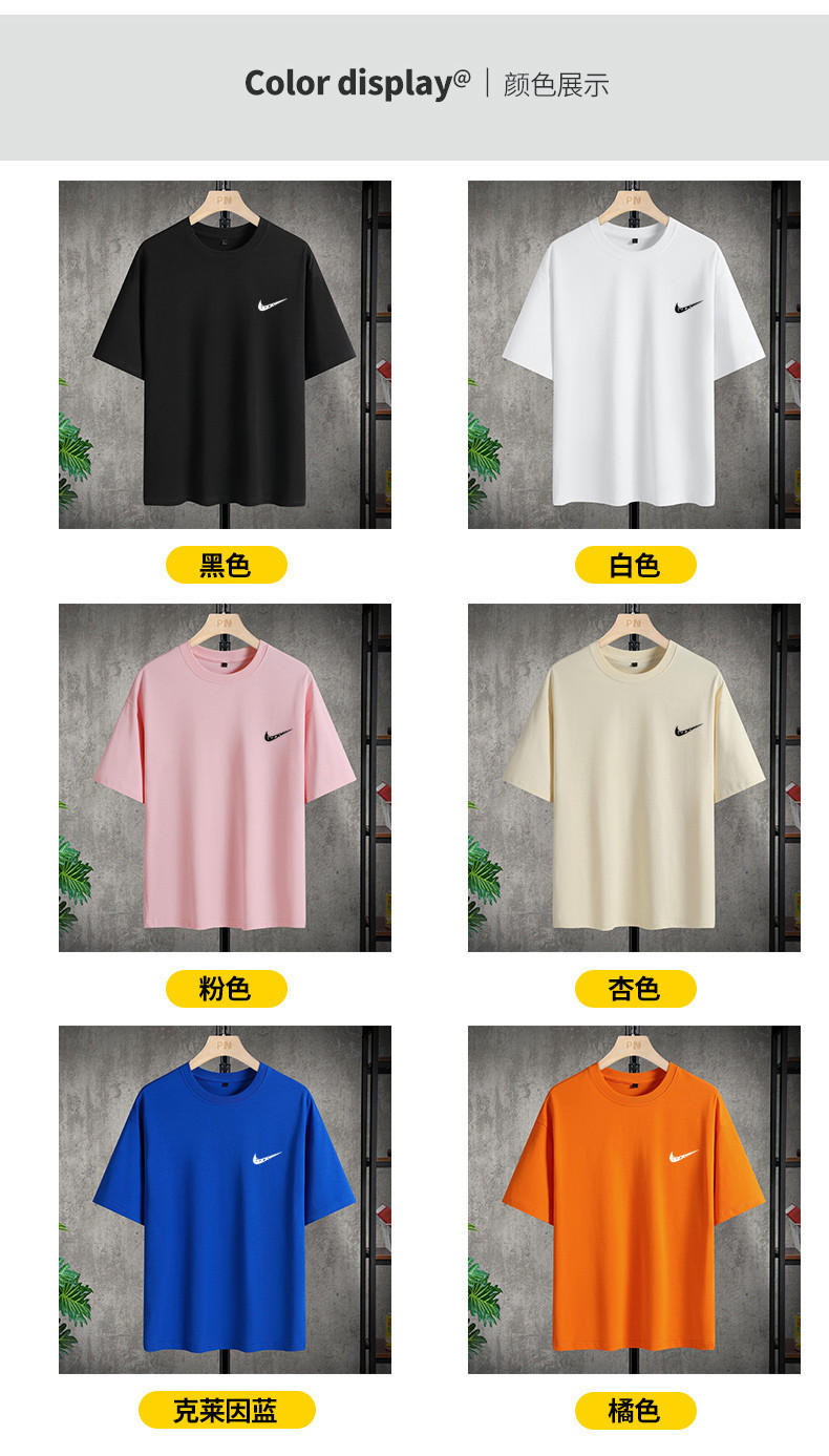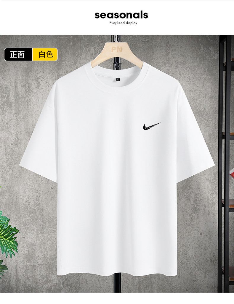 남자 2024 여름 반팔 티셔츠 루즈 트렌디 브랜드 티셔츠 솔리드 컬러 라운드 넥 헤비 커플 티셔츠 탑스토어 가기