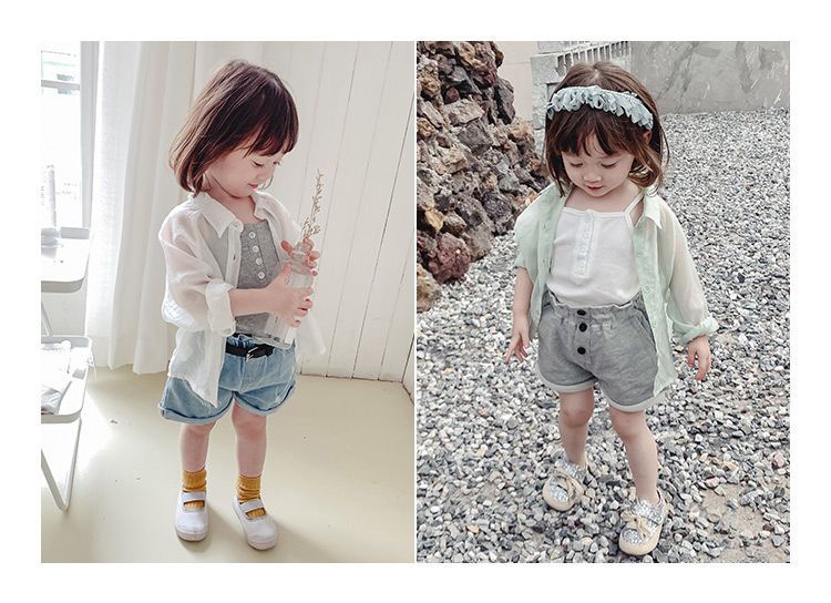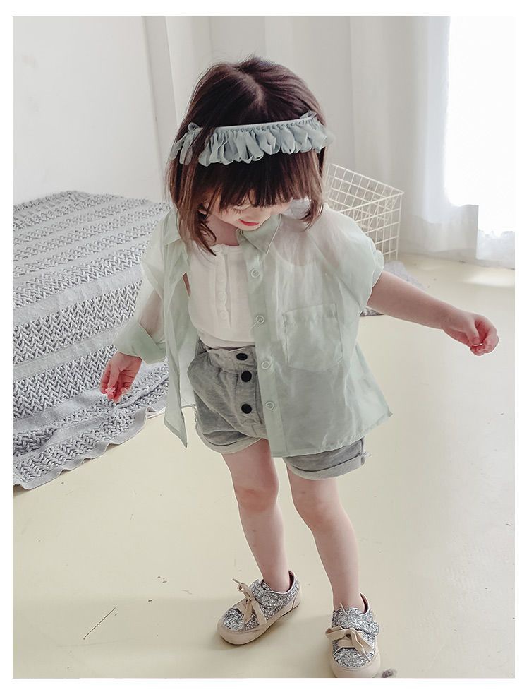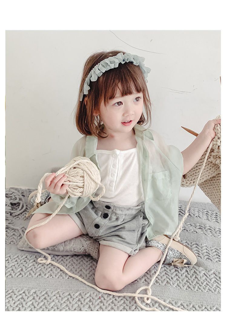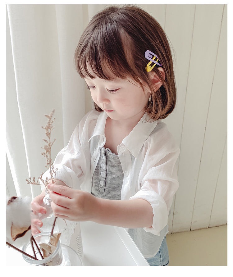 여자 여름 긴팔 셔츠 아기의 서양식 어린이 성격 유행 한국식 단색 얇은 에어컨 옷 셔츠스토어 가기