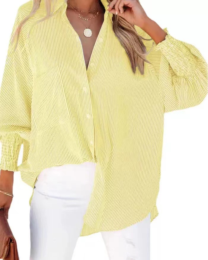 유럽과 미국 국경 아마존 대외 무역 2025 줄무늬 긴 소매 느슨한 캐주얼 블라우스 비치 선 스크린 여성 셔츠