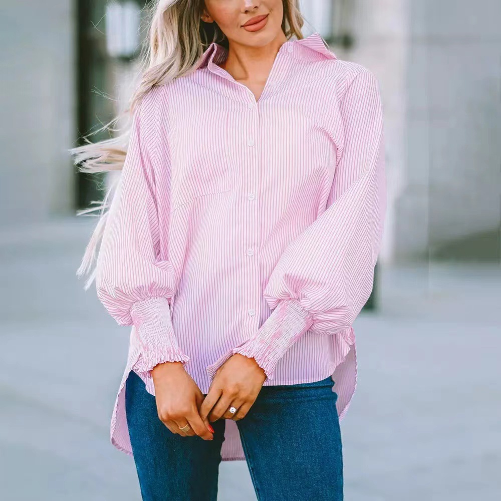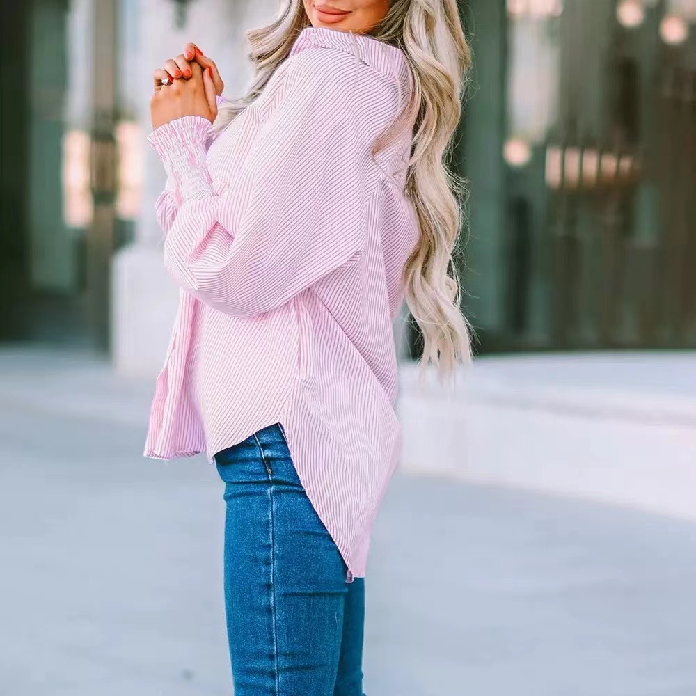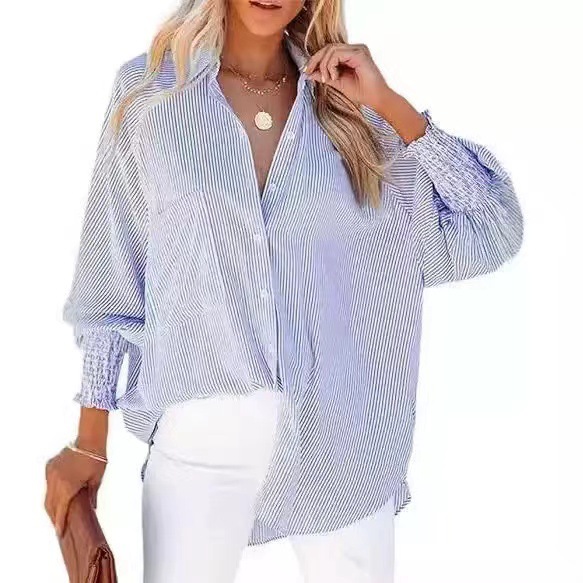 유럽과 미국 국경 아마존 대외 무역 2025 줄무늬 긴 소매 느슨한 캐주얼 블라우스 비치 선 스크린 여성 셔츠스토어 가기