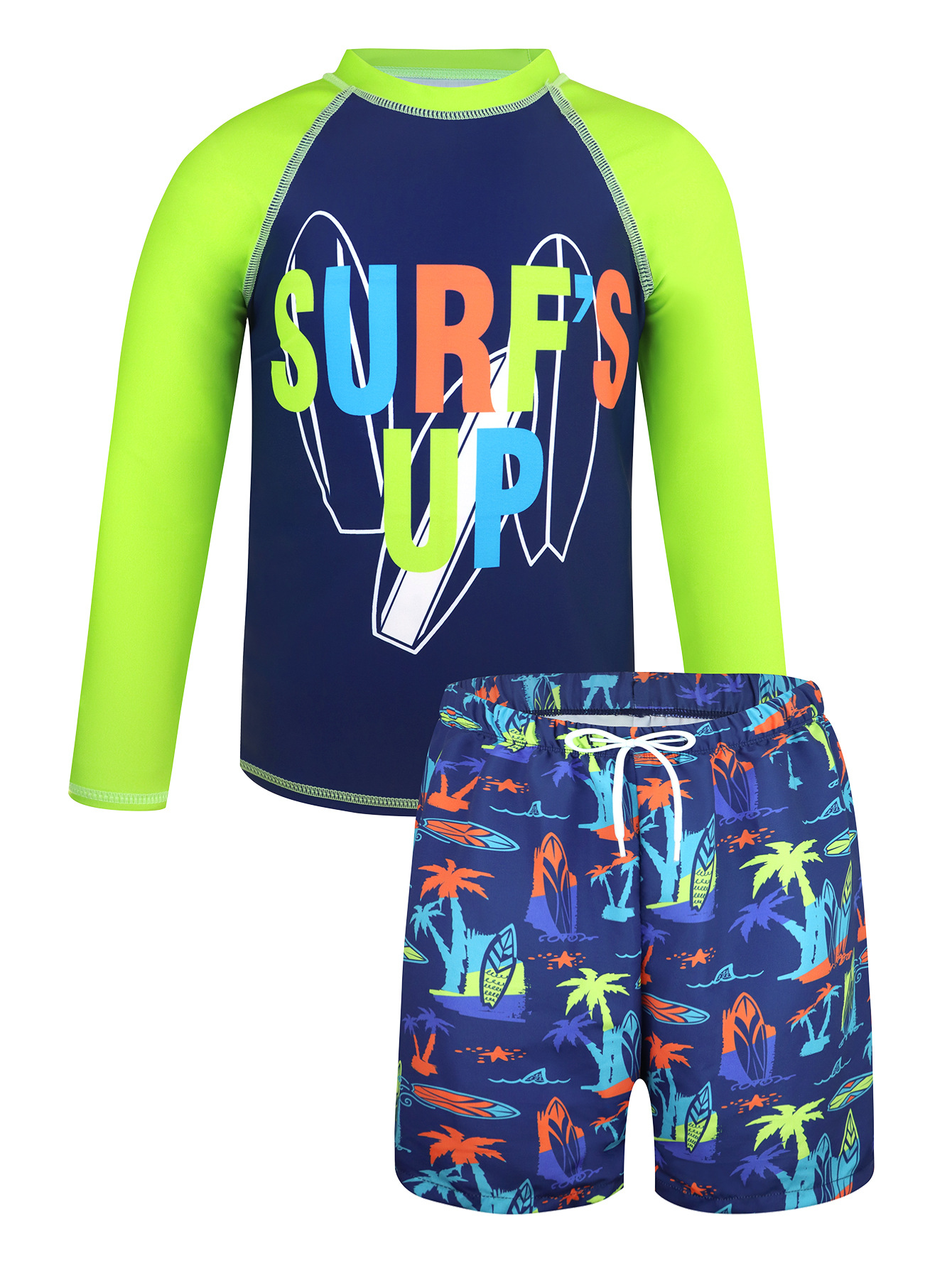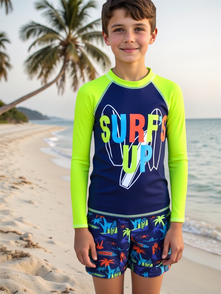 어린이 수영복 소년 분할 수영복 2025 새로운 긴 소매 편지 태양 보호 해변 반바지 소년 수영복