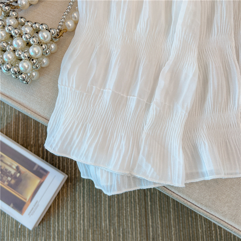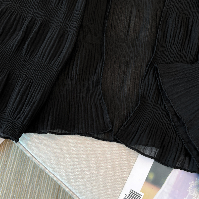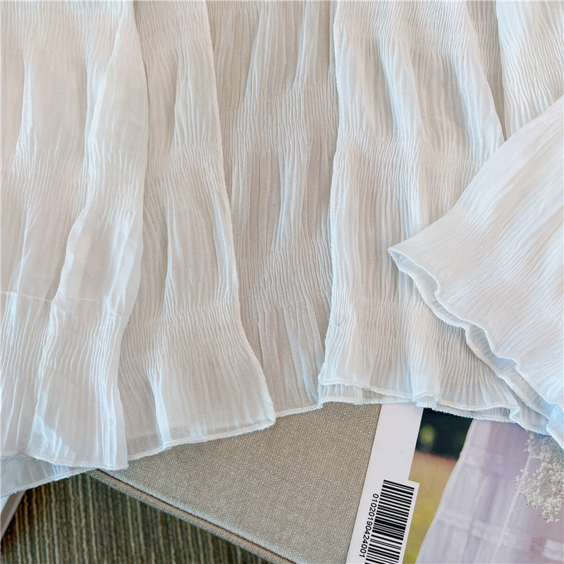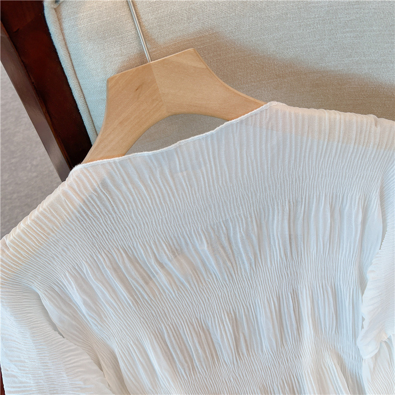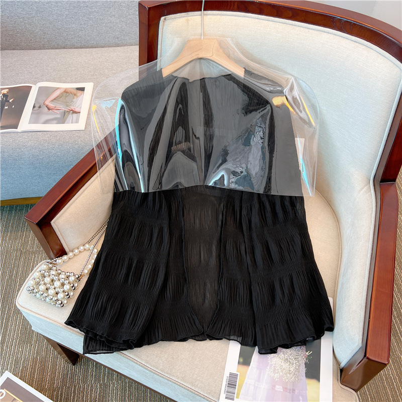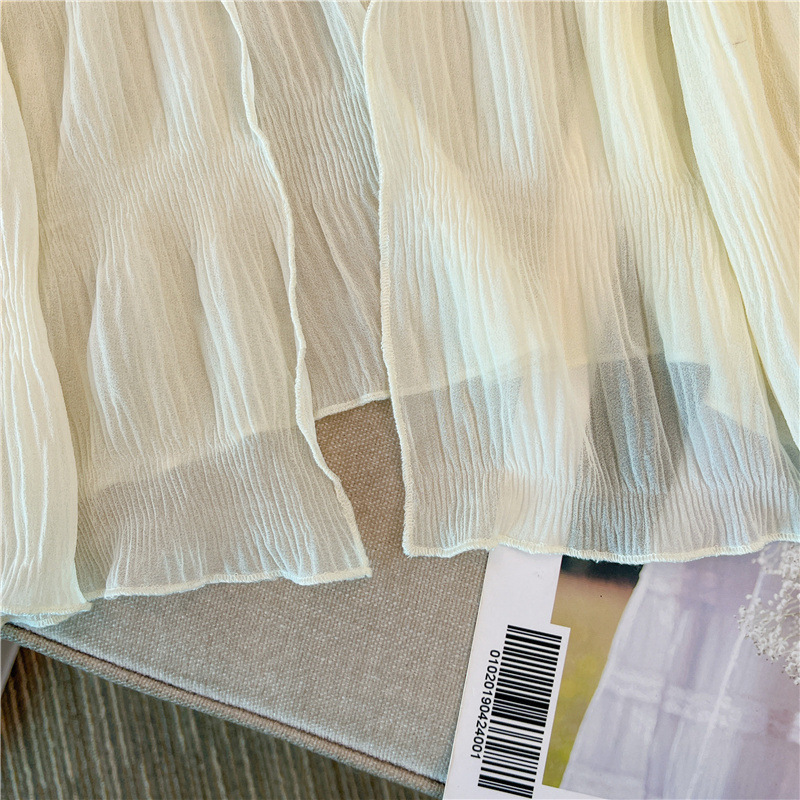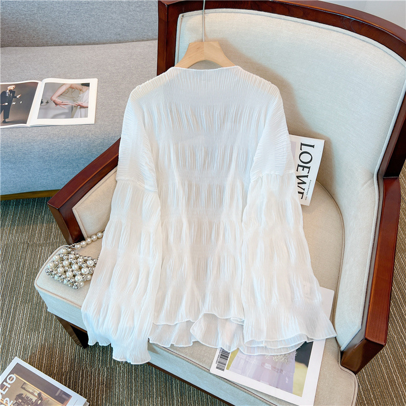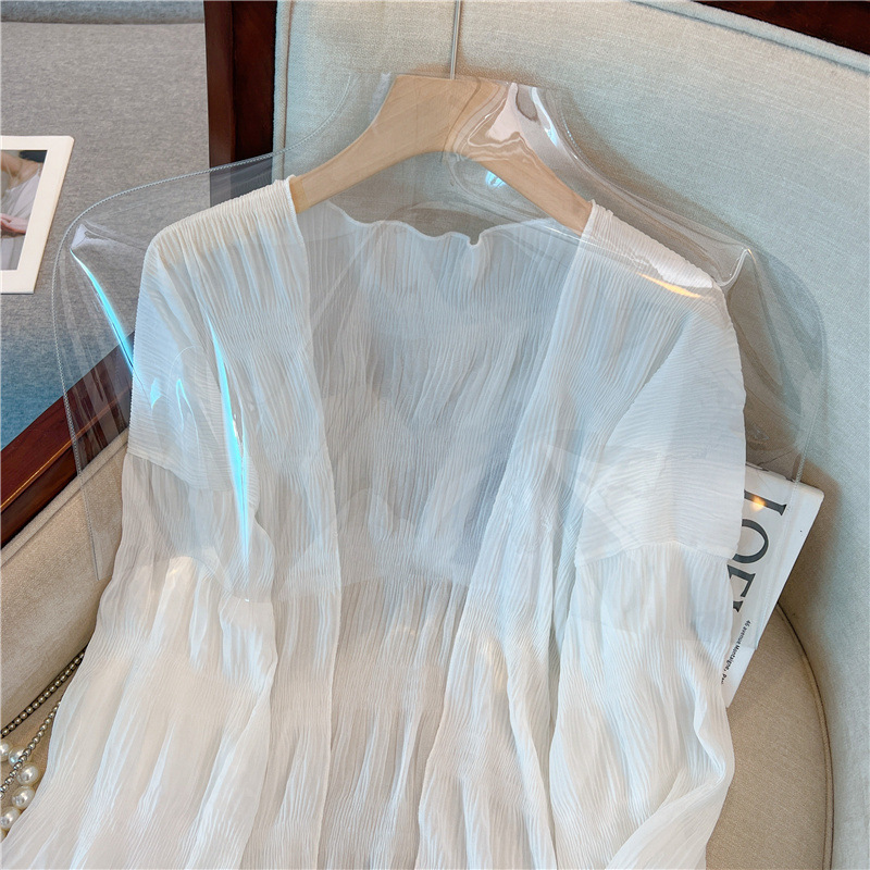 플러스 사이즈 여성의 여름 얇은 태양 보호 의류 2024 통통한 주름 디자인 카디건 자켓 풀린 다목적 탑