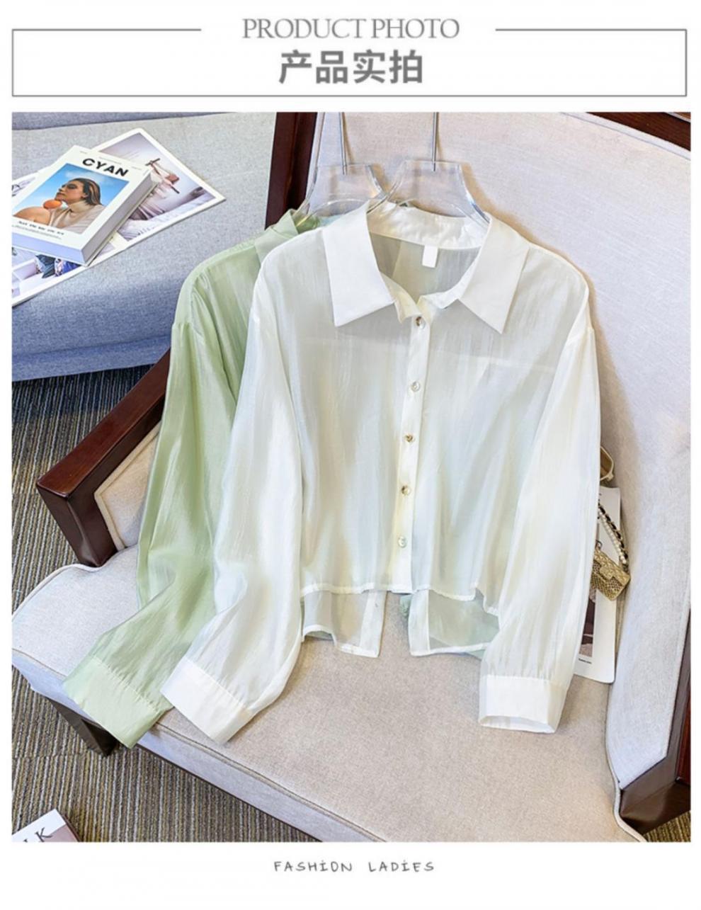 2024 새로운 도착 짧은 선 스크린 셔츠 외부 착용 여성의 여름 얇은 슈퍼 페어리 카디건 셔츠 작은 탑스토어 가기