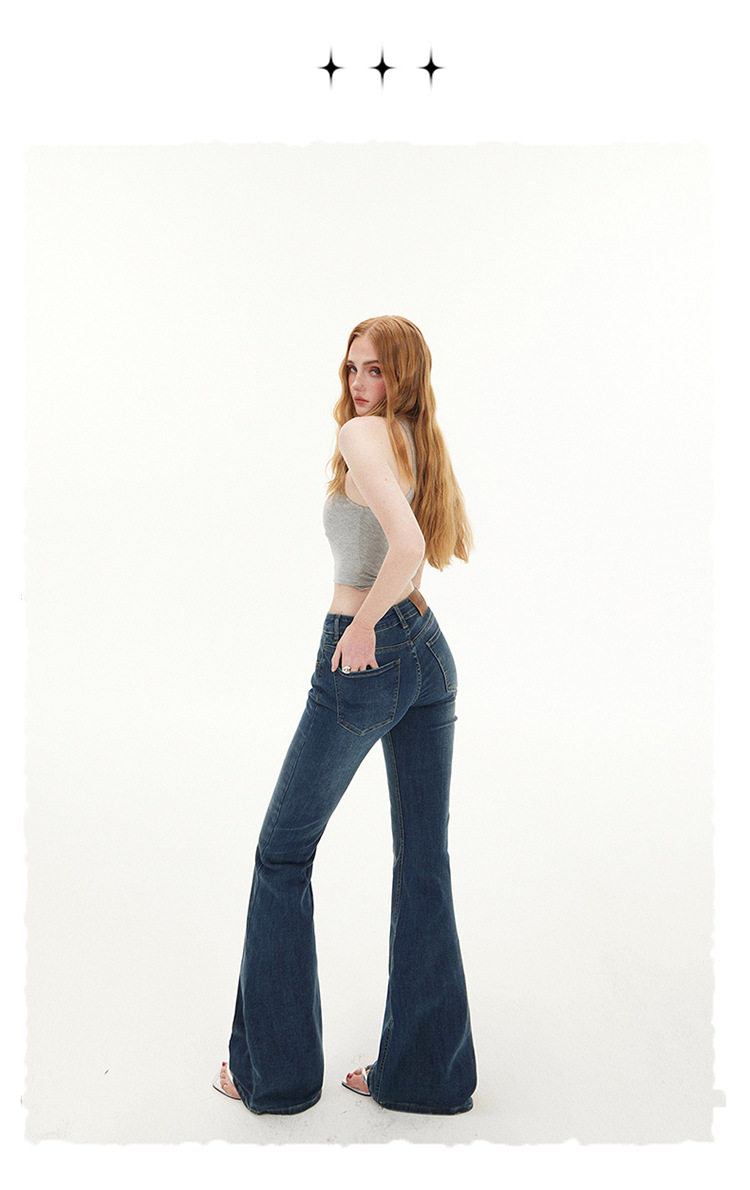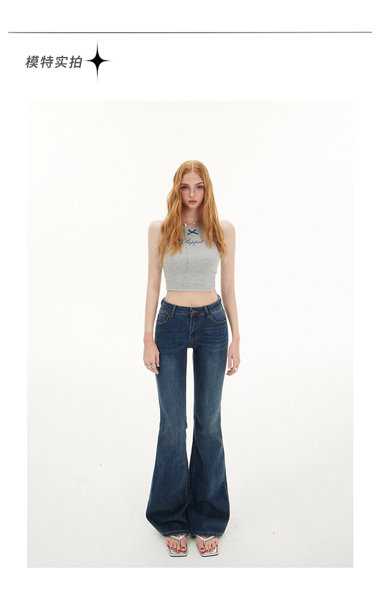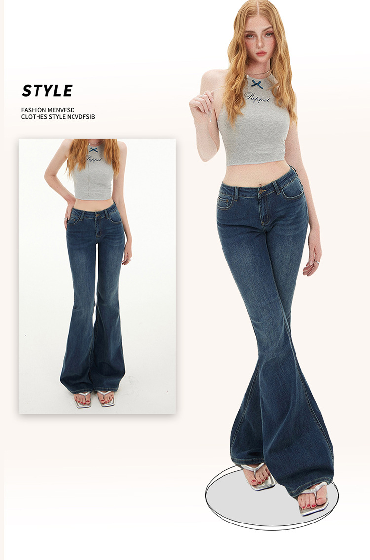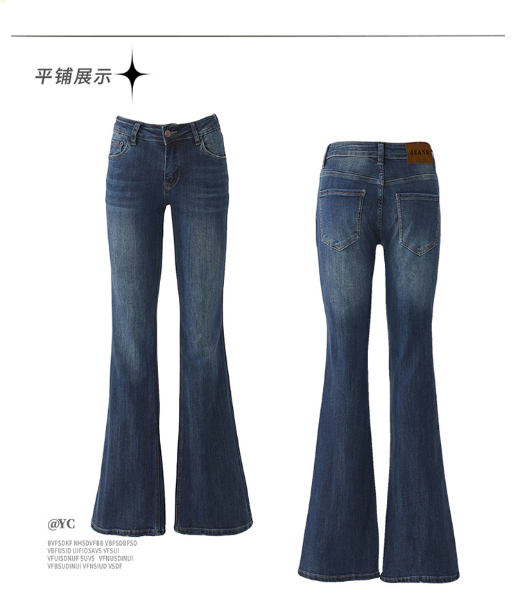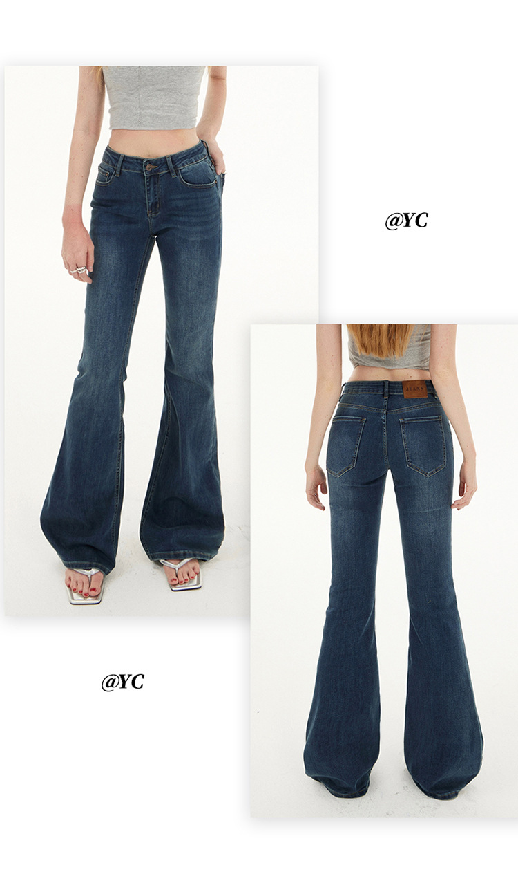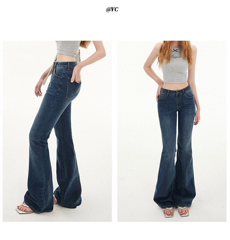 YC & 미국 스타일의 복고풍 낮은 허리 핫 소녀 플레어 팬츠 슬림 핏 슬리밍 스트레칭 청바지 여성의 봄과 여름 및 긴 바지스토어 가기