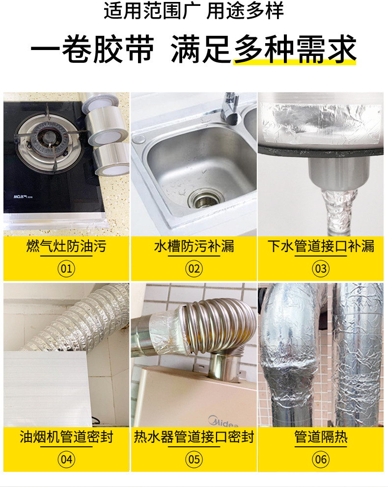 두꺼운 알루미늄 호일 테이프 고온 저항하는 주방 범위 후드 온수기 파이프 물개 누출 수리 냄비 자체 페이스트스토어 가기