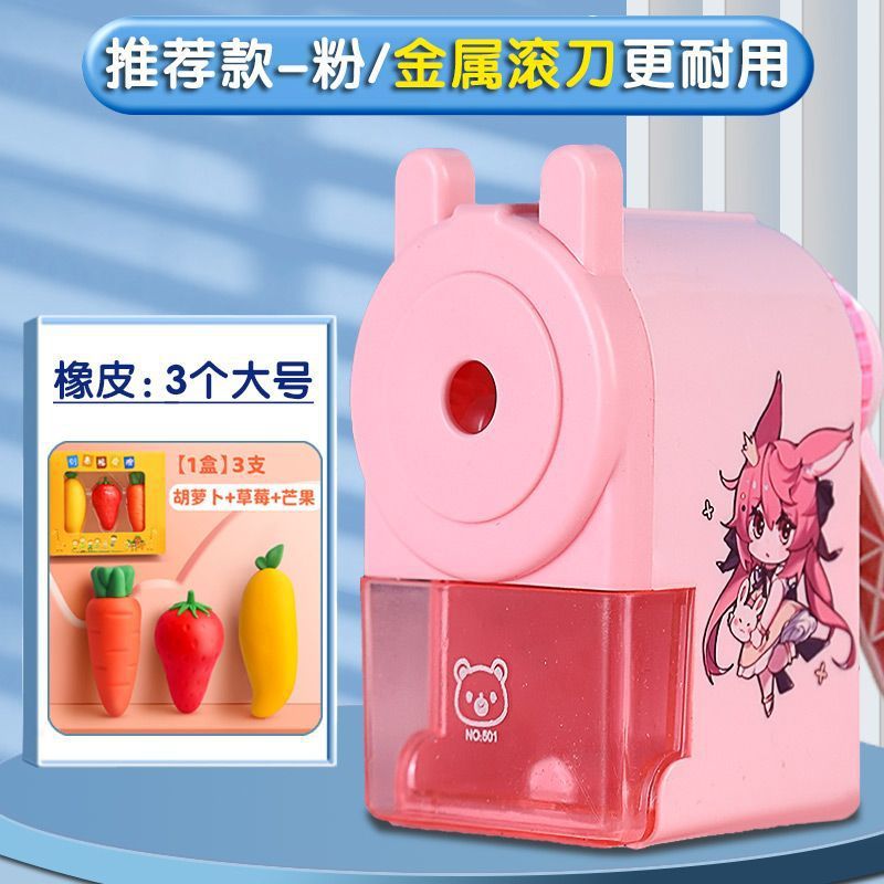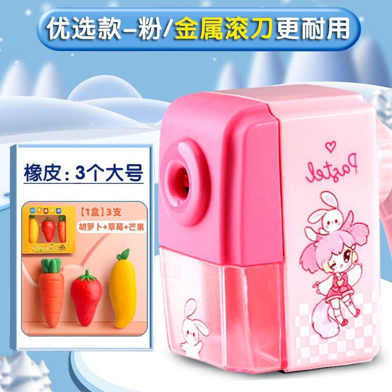 • 향상된 버전 [업그레이드된 칼 머리] - 핑크 + 대형 과일 지우개 3개