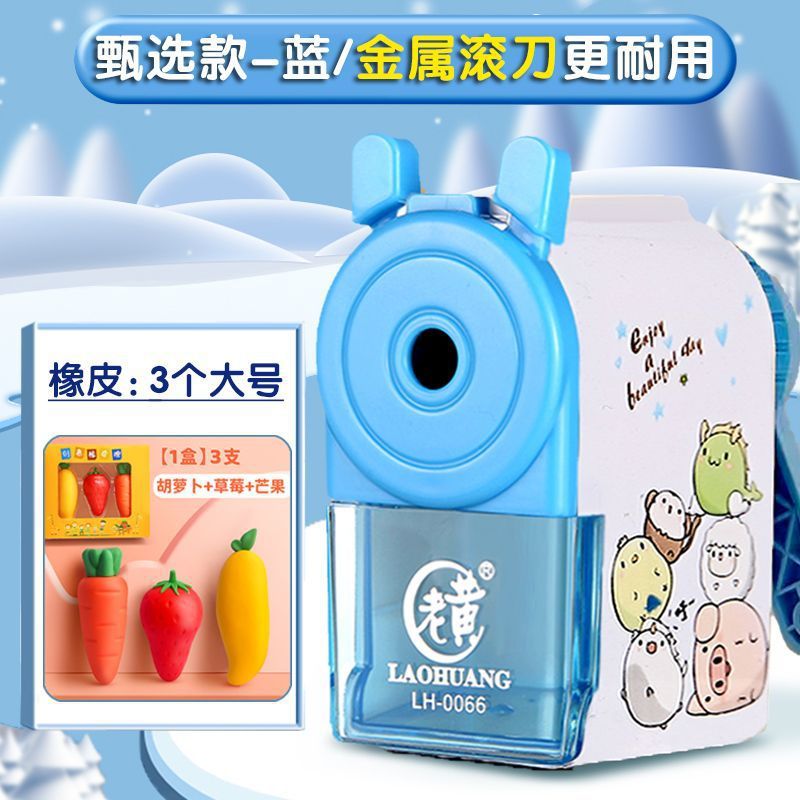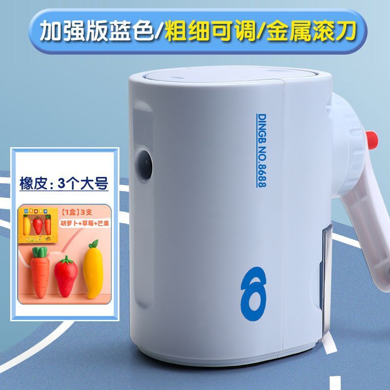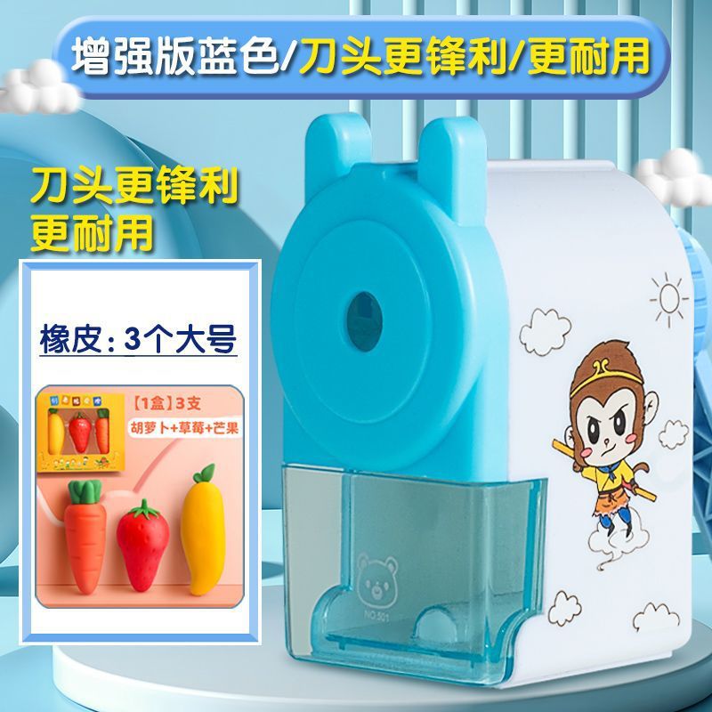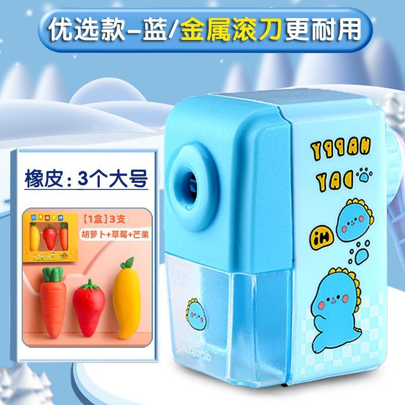 • 향상된 버전 [업그레이드된 칼 머리] - 파란색 + 대형 과일 지우개 3개