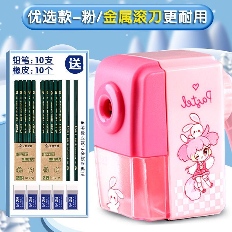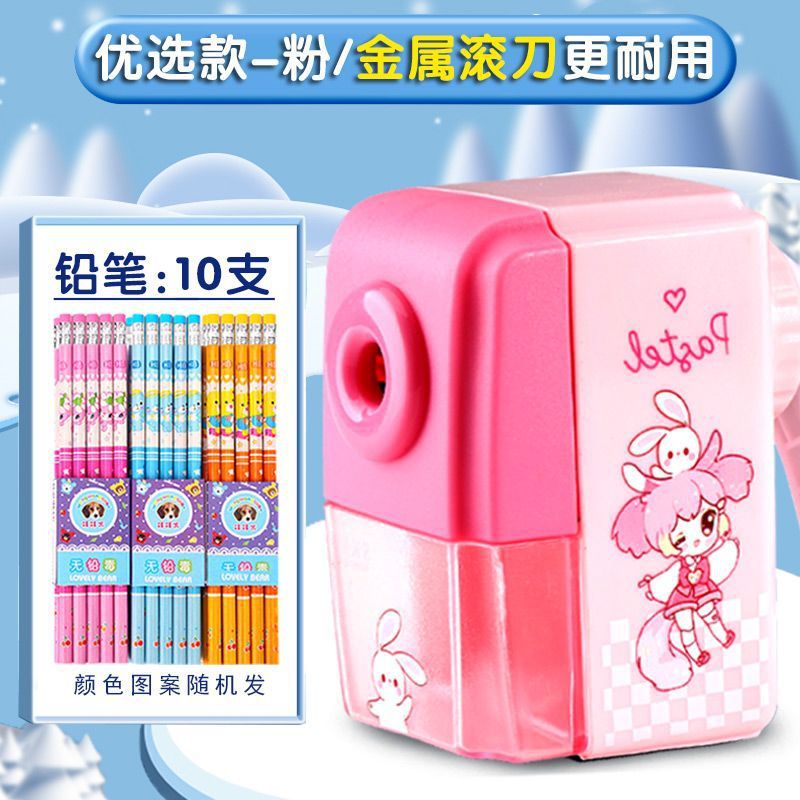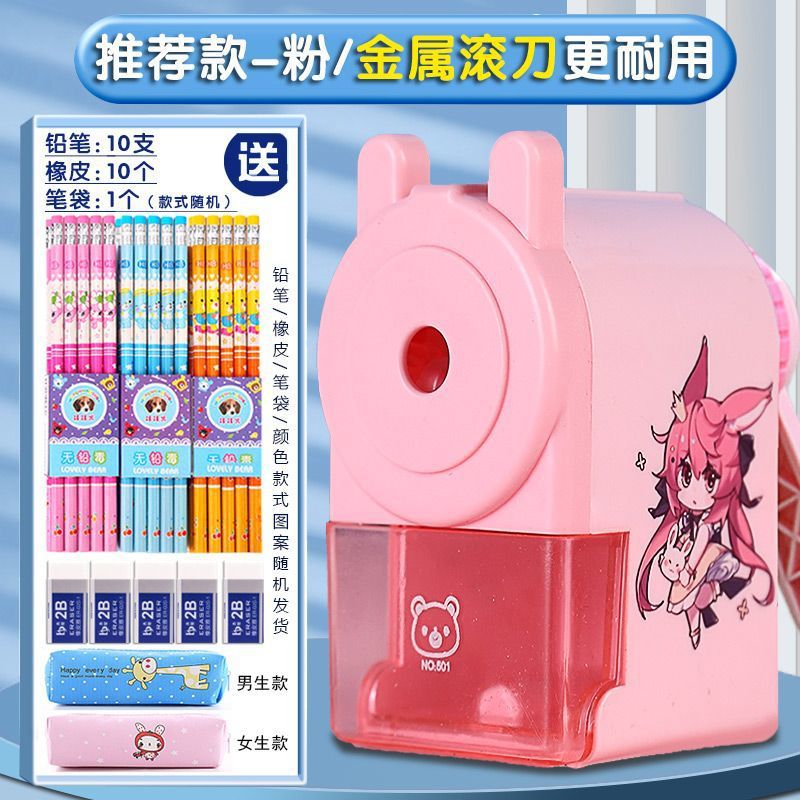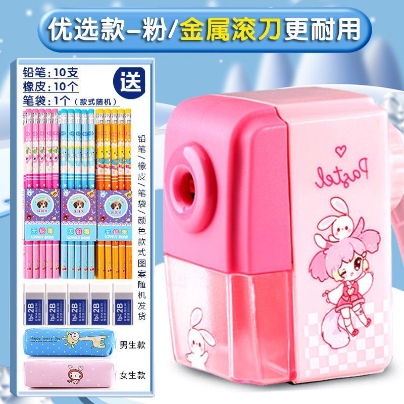 • 향상된 버전 [업그레이드된 칼날] - 핑크 + 연필 10개, 지우개 10개, 필통 1개