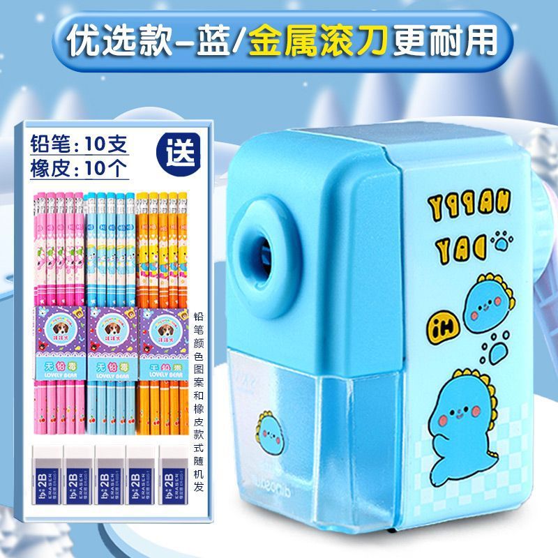 • 향상된 버전 [업그레이드된 칼날] - 파란색 + 연필 10개, 지우개 10개, 필통 1개