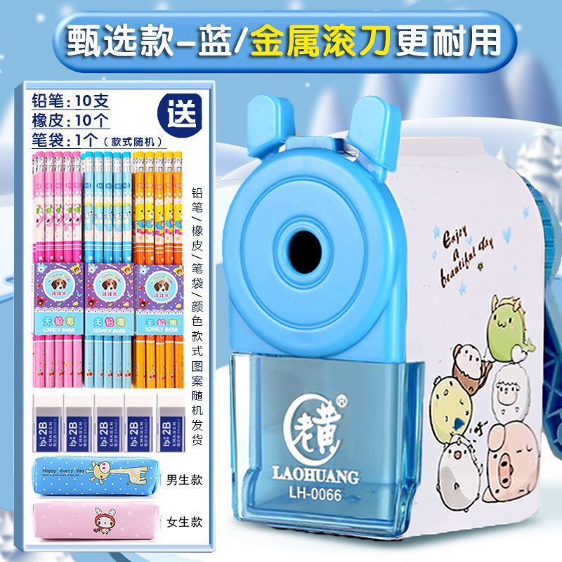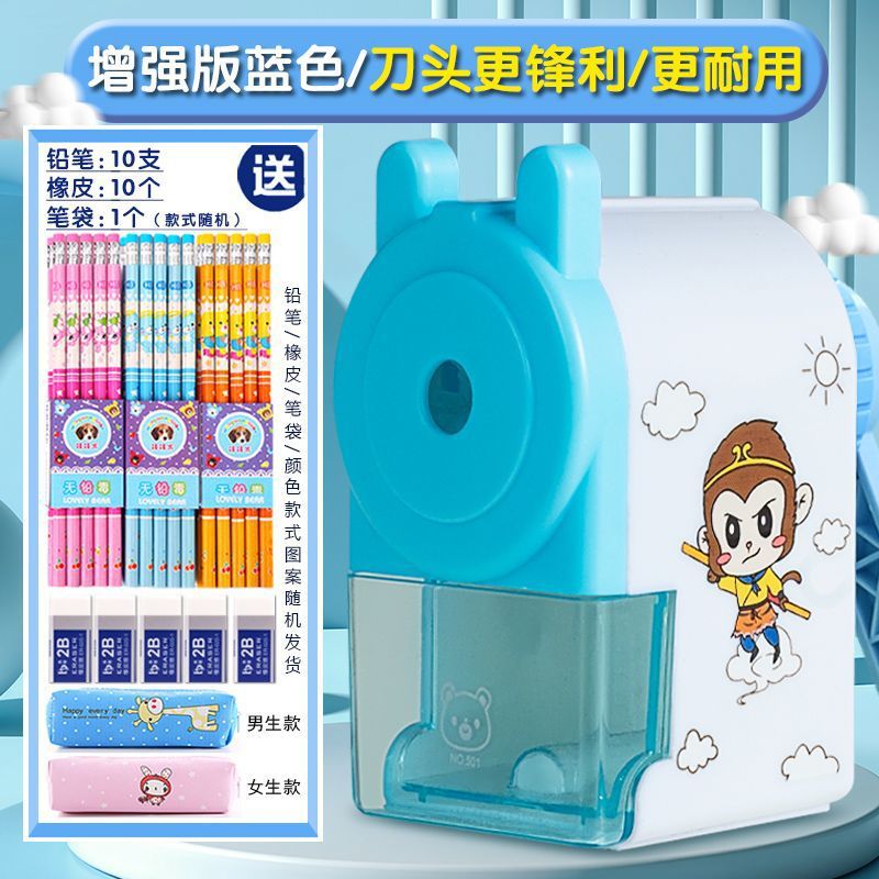 • 향상된 버전 [두 번째 기어 조정] - 파란색 + 연필 10개, 지우개 10개, 필통 1개