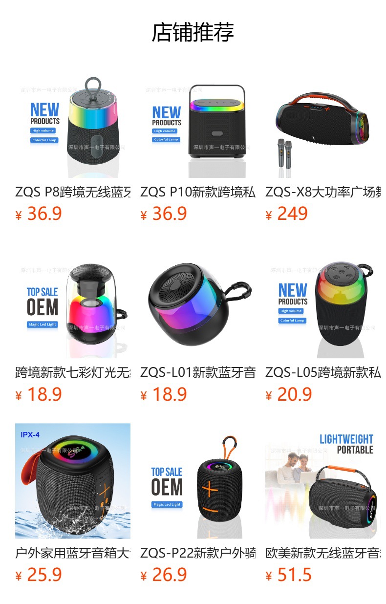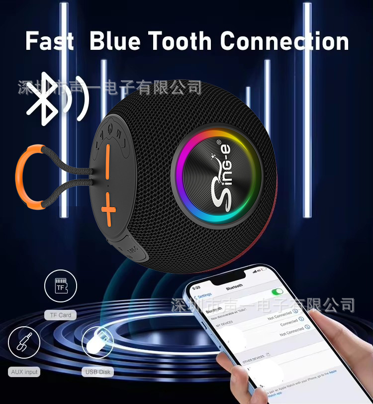 功能:蓝牙,U盘,TF,收音,AUX音频,TWS串联,RGB彩灯