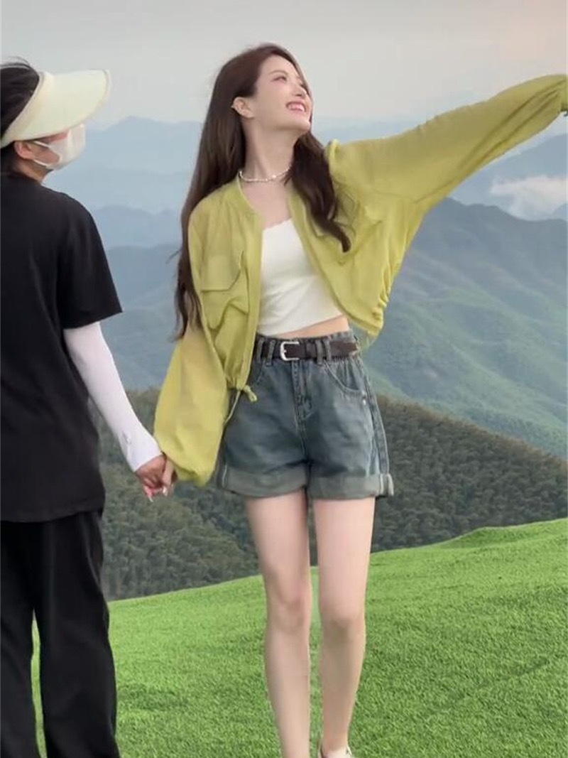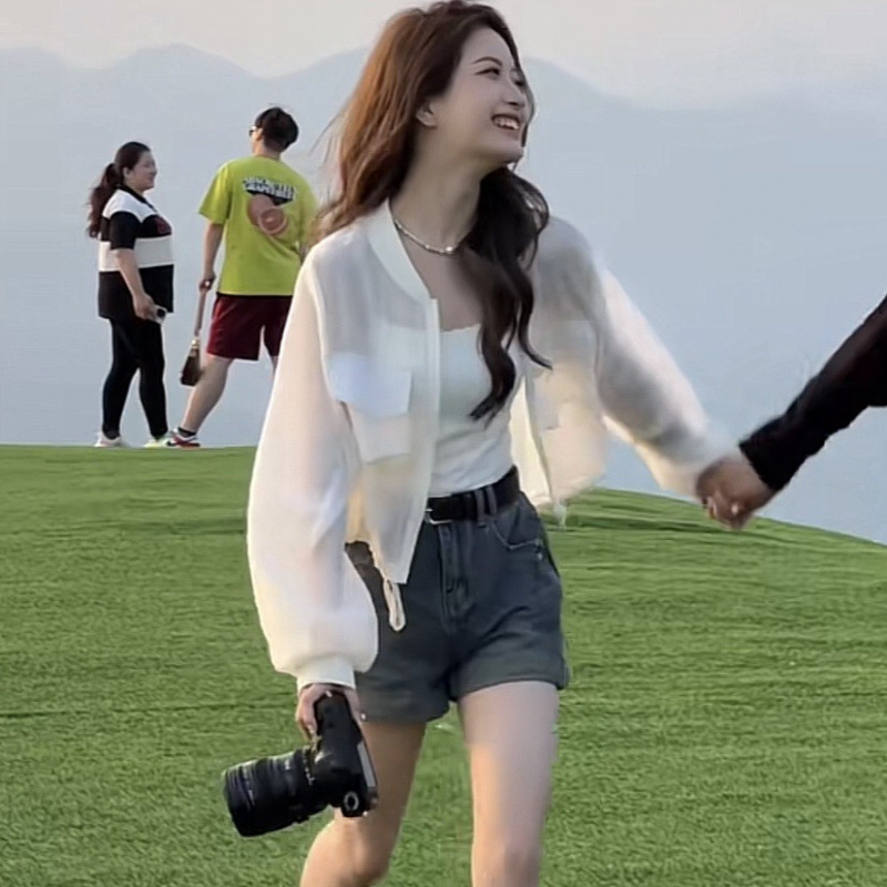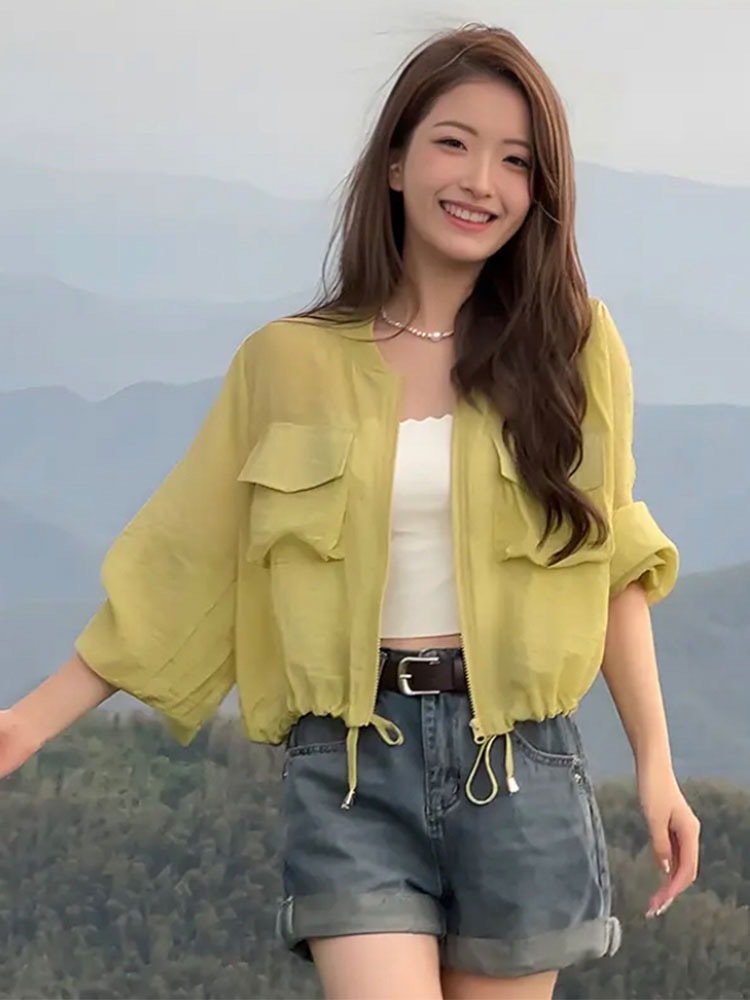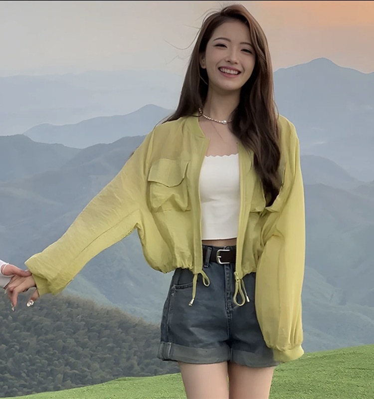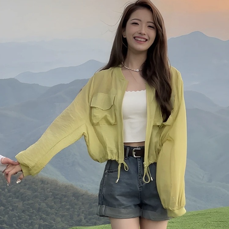 태양 보호 의류 여성용 겉옷 2025 새로운 여름 타이트 허리 짧은 느슨한 자외선 방지 카디건 재킷