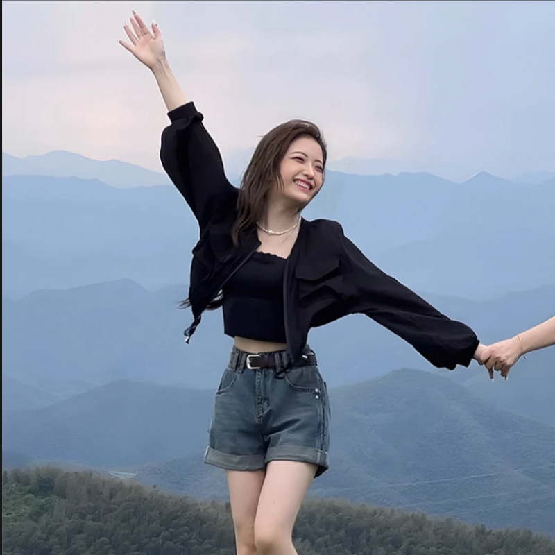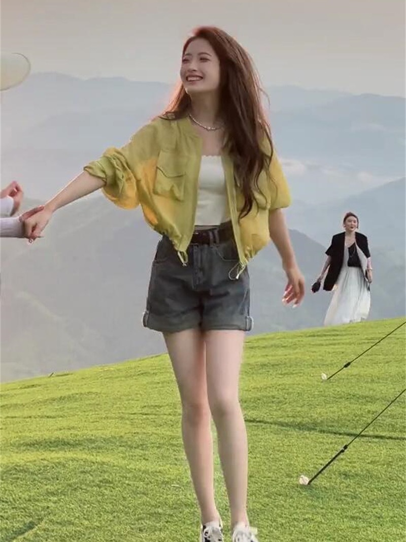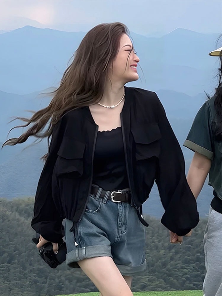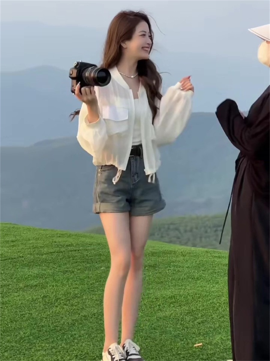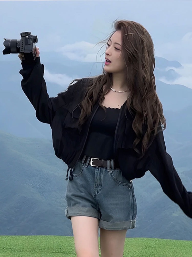 태양 보호 의류 여성용 겉옷 2025 새로운 여름 타이트 허리 짧은 느슨한 자외선 방지 카디건 재킷