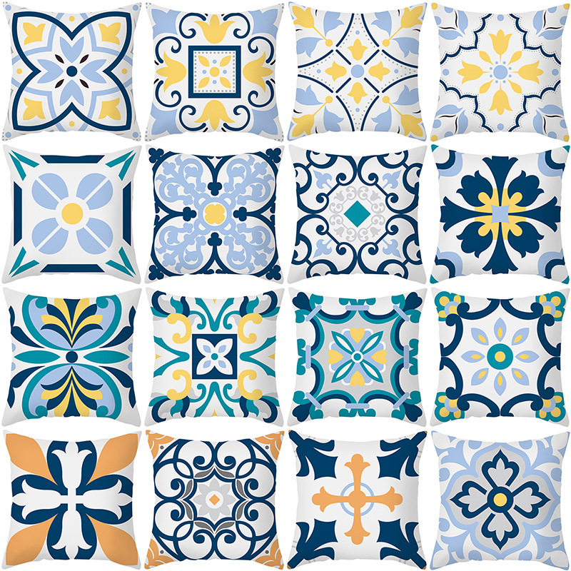 국경 간 복숭아 가죽 인쇄 베개 케이스 북유럽 간단한 컬러 패턴 소파 쿠션 커버 사무실 베개 케이스