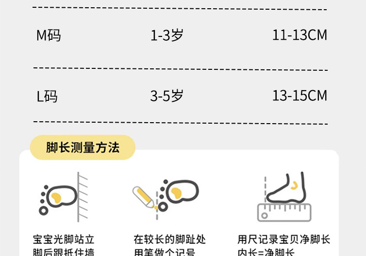 • M 사이즈 1-3세, 권장 발 길이 11-13CM