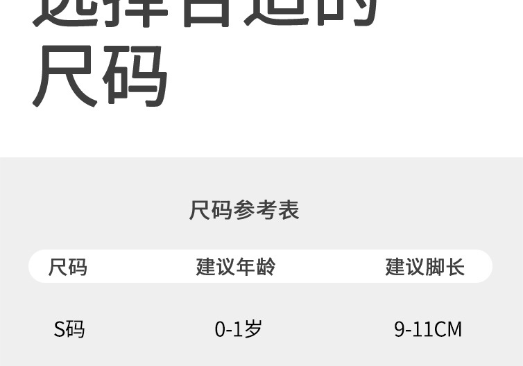 • S 사이즈 0-1세, 권장 발 길이 9-11CM