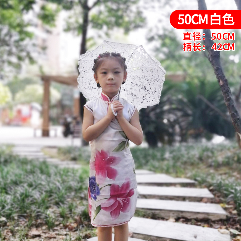 어린이 화이트 할로우 작은 우산 레이스 사진 우산 소녀 댄스 소품 장식 공예 작은 우산스토어 가기
