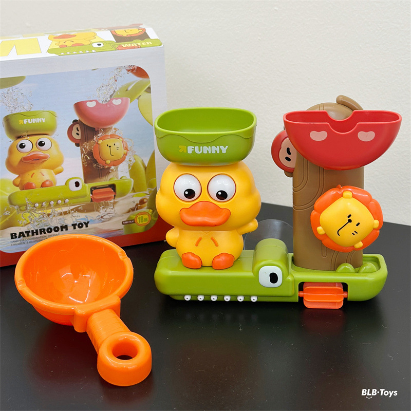 국경 간 어린이 욕실 물 놀이 장난감 만화 귀여운 오리 턴 음악 빨판 샤워 스프레이 물 세트 목욕 장난감스토어 가기