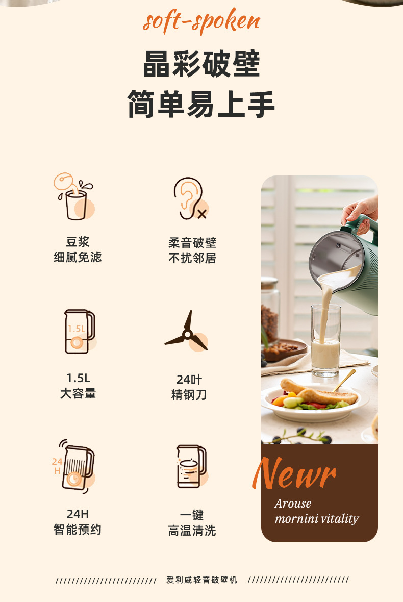 1500ML 두유 기계는 시간에 따라 가열할 수 있으며 필터링이 필요 없으며 일체형 기계, 공장 직접 판매, OEM 맞춤형 선물 배송스토어 가기