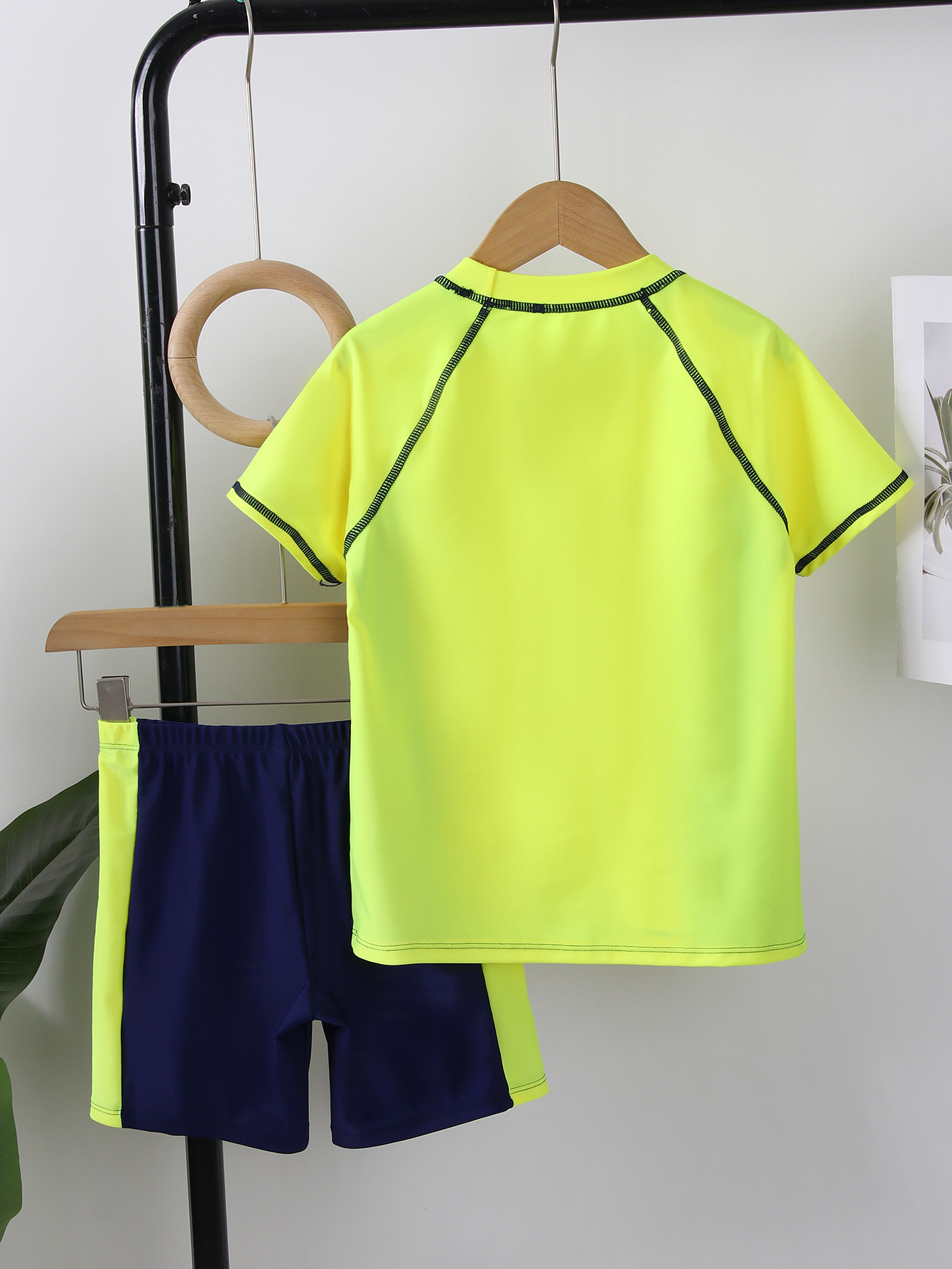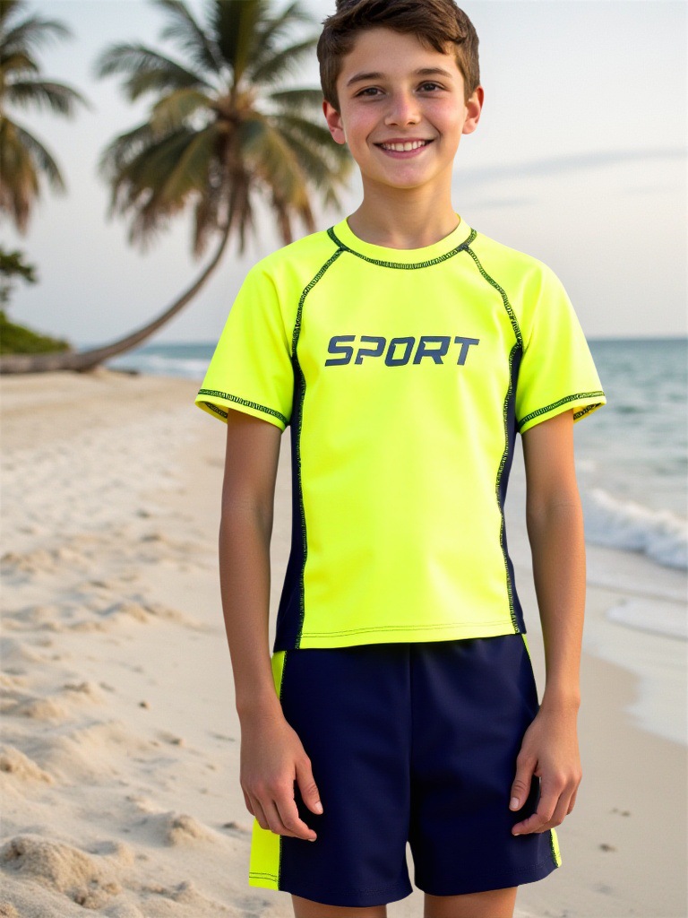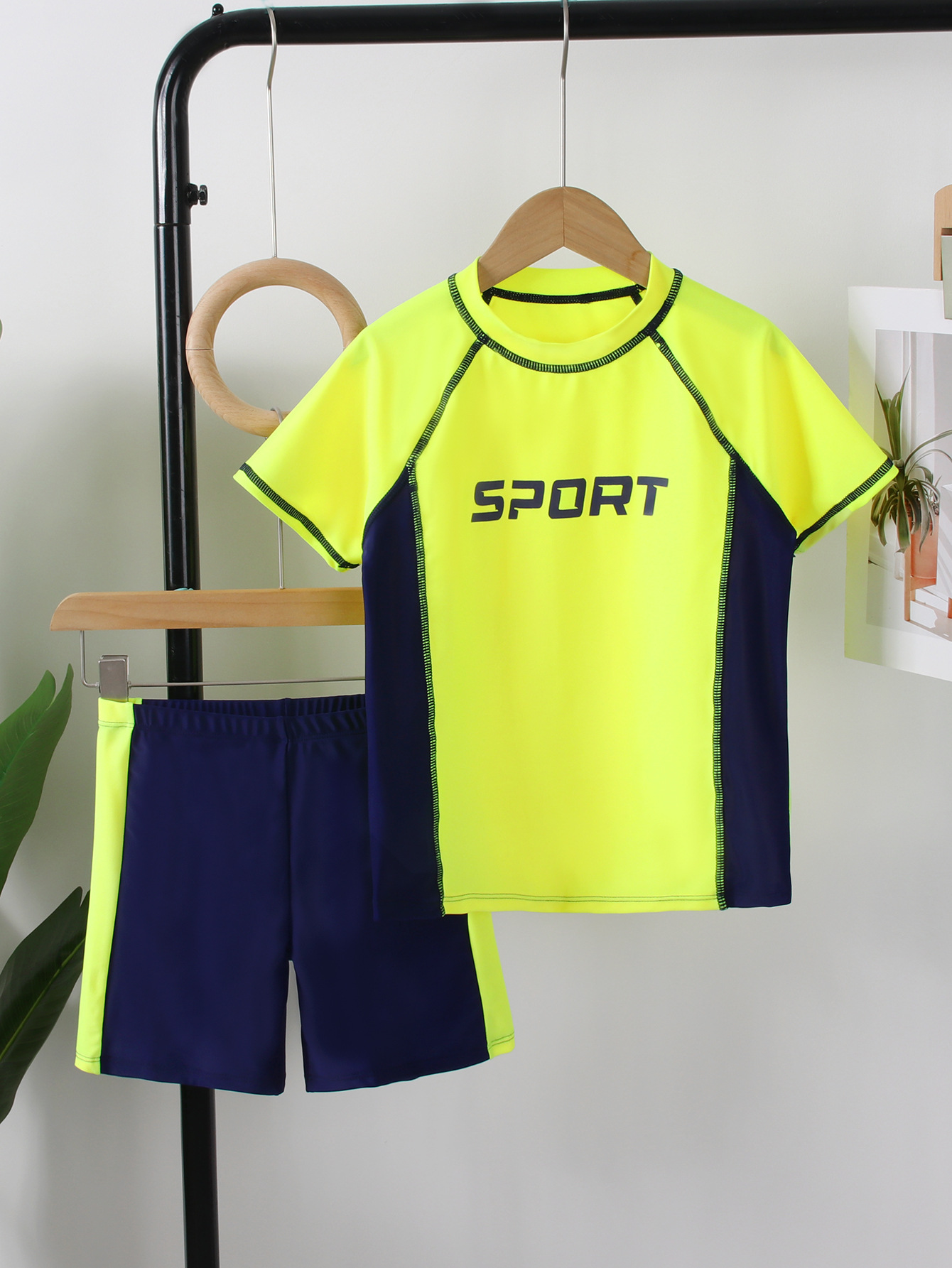 어린이 수영복 소년의 분할 수영복 2025 새로운 반팔 반바지 컬러 블록 편지 스포츠 소년 수영복