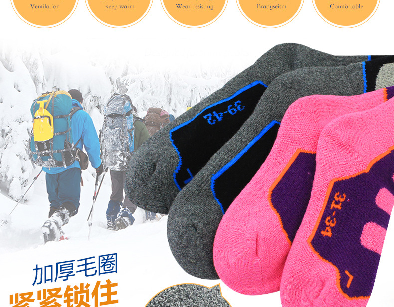 남성과 여성 어린이를위한 스키 양말 두꺼운 따뜻한 긴 튜브 높은 양말 야외 하이킹 눈 양말 스포츠 수건 바닥
