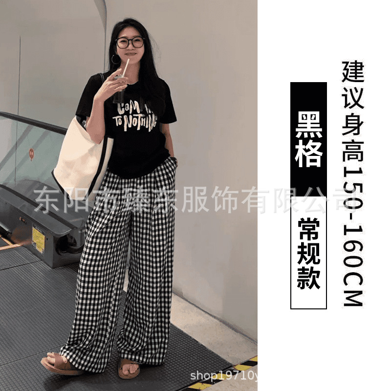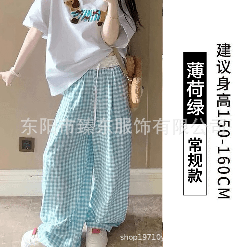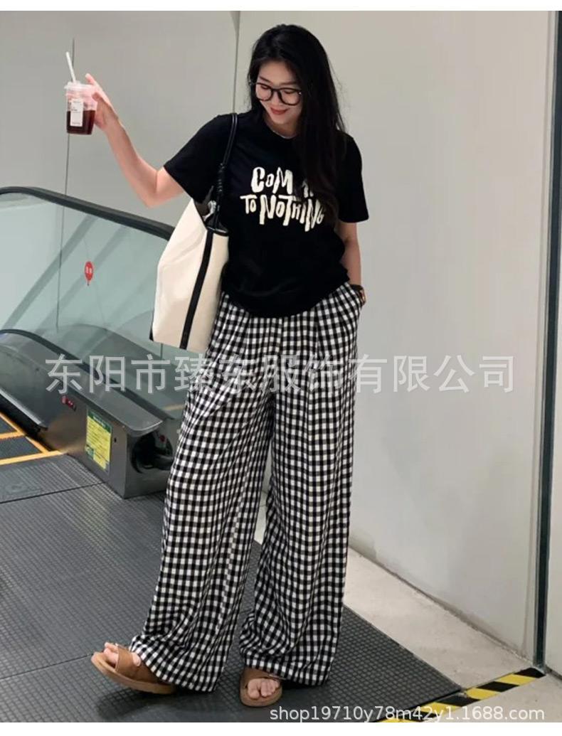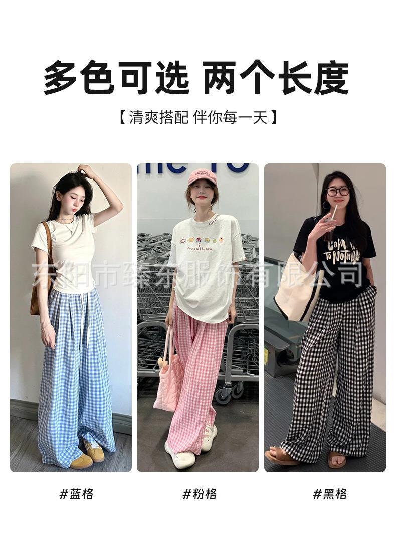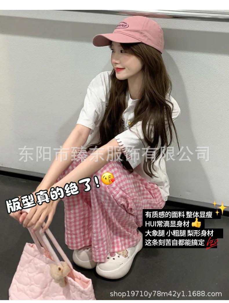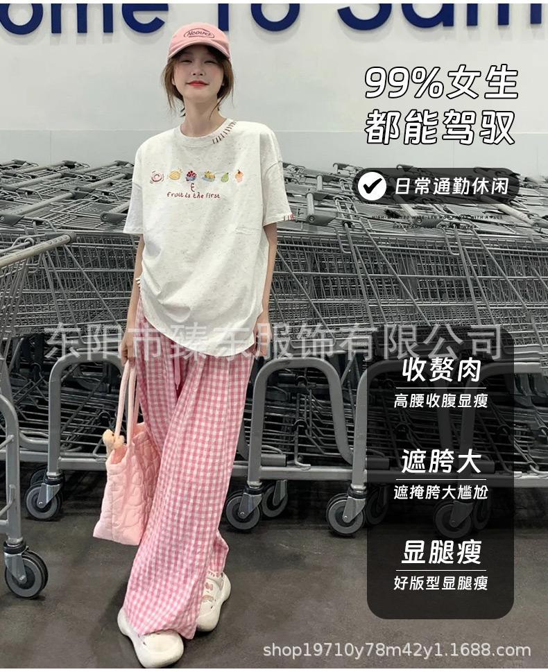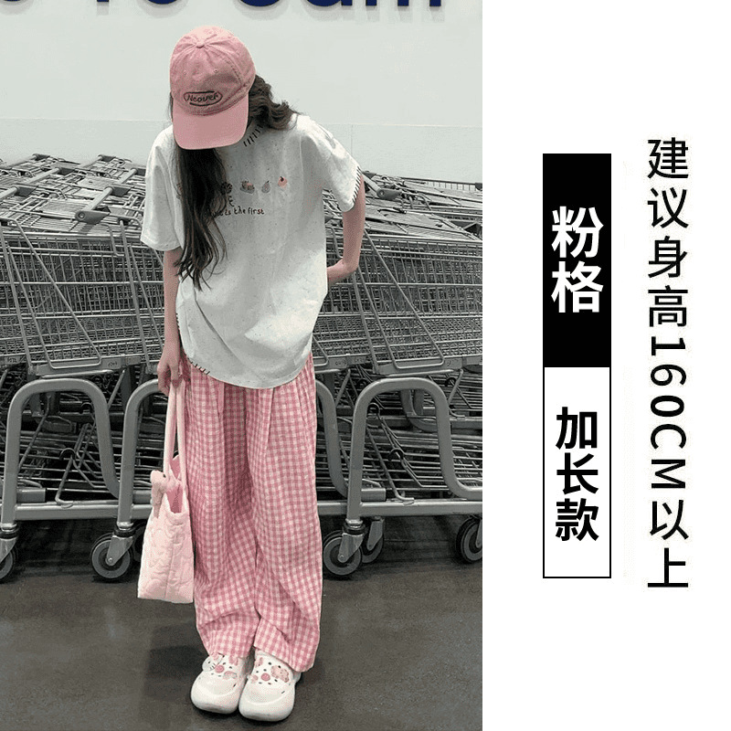 핑크 및 흰색 대비 격자 무늬 바지 여성용 25 슬림 핏 느슨한 서랍 캐주얼 Ins 높은 허리 덤핑 바지스토어 가기