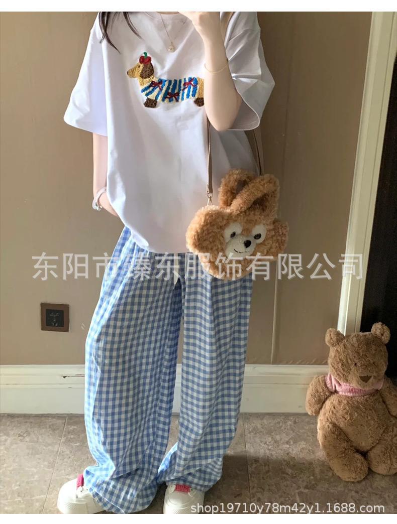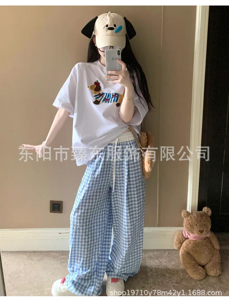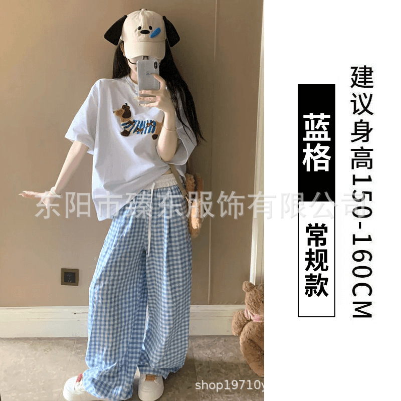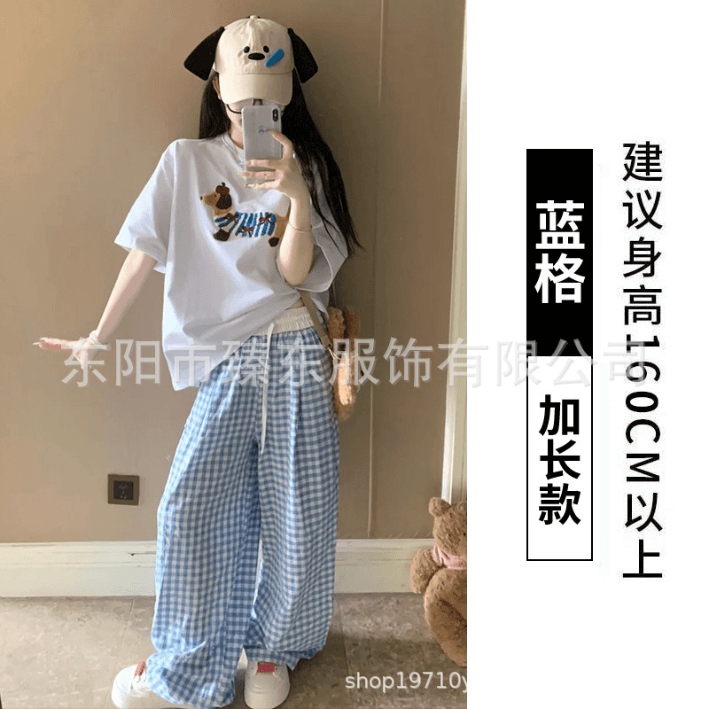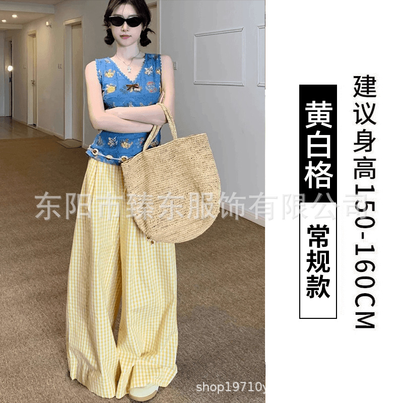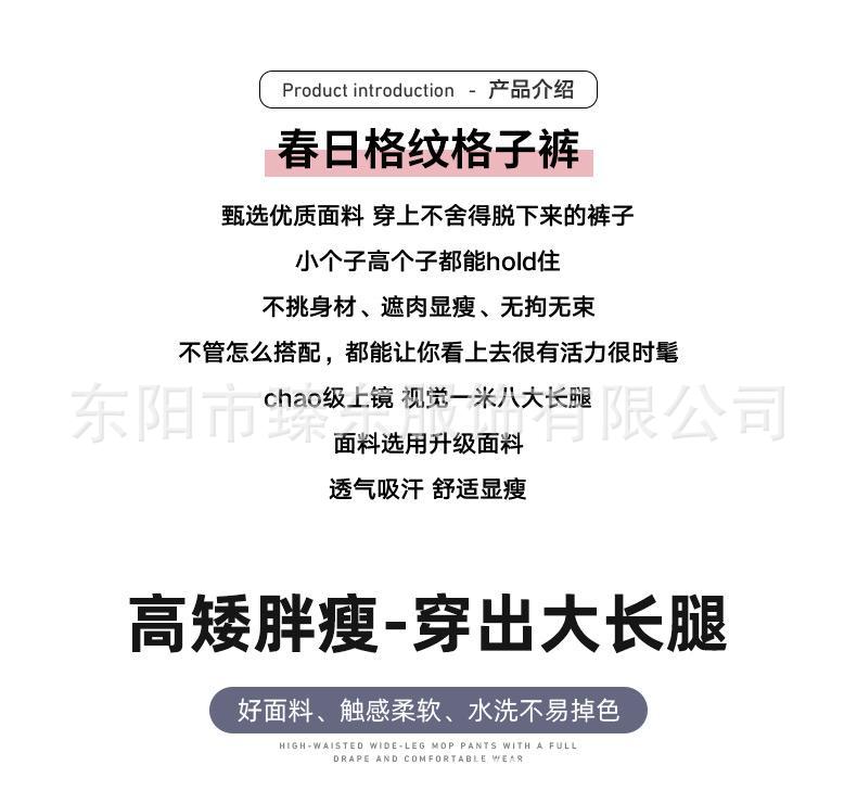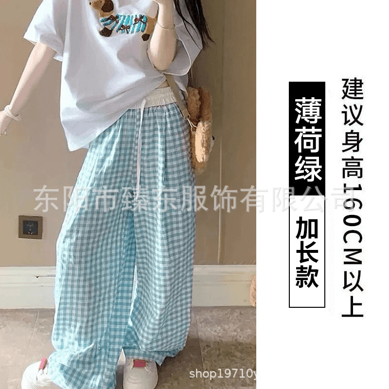 핑크 및 흰색 대비 격자 무늬 바지 여성용 25 슬림 핏 느슨한 서랍 캐주얼 Ins 높은 허리 덤핑 바지스토어 가기