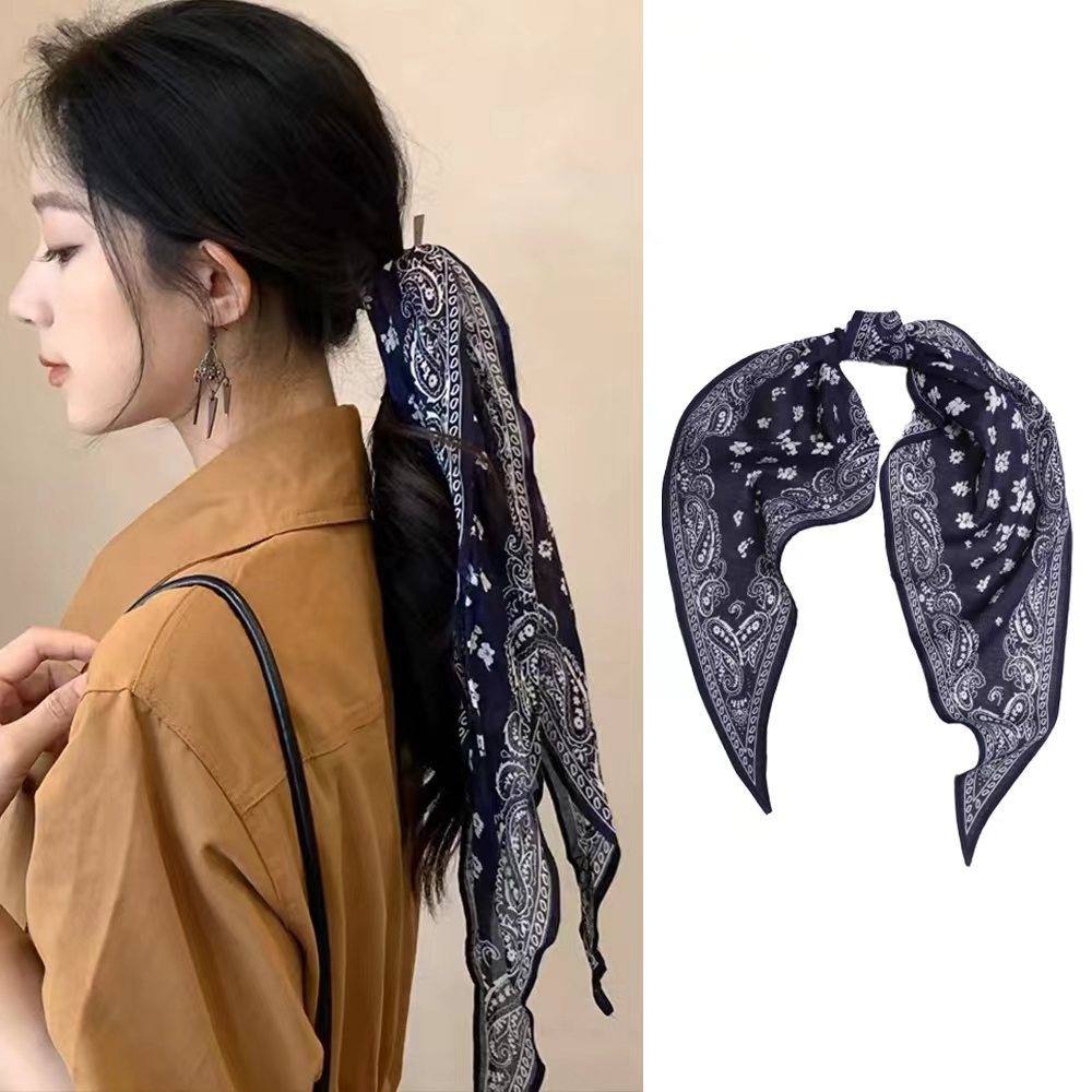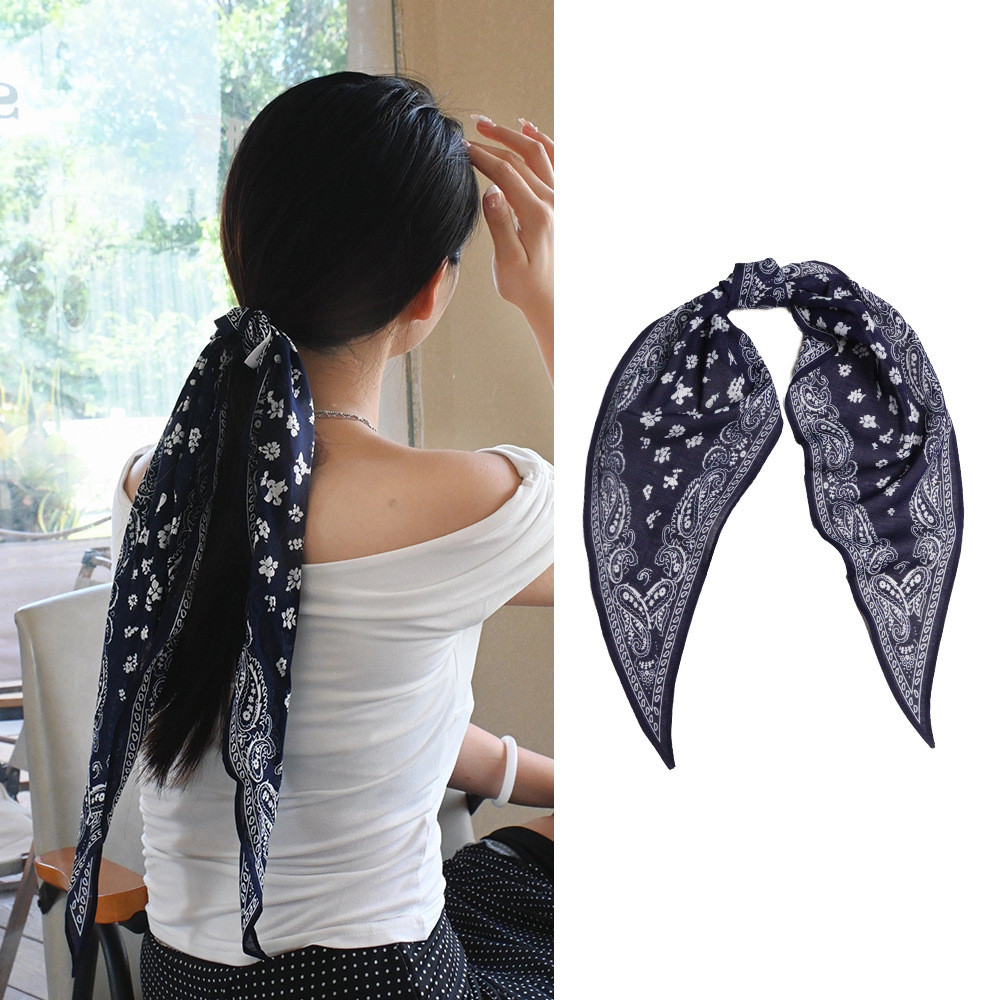 패셔너블한 긴 면 스카프, 캐슈넛 머리띠, 터번 스카프, 실크 스카프, 고급 마름모 스카프, 미니멀 스타일, 가벼운 럭셔리