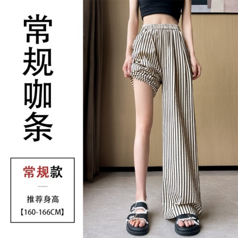 캐주얼 올 매치 스트라이프 와이드 레그 팬츠 여자 여름 착용 얇은 높은 허리 느슨한 슬리밍 야마모토 팬츠 올 매치 롱 팬츠스토어 가기