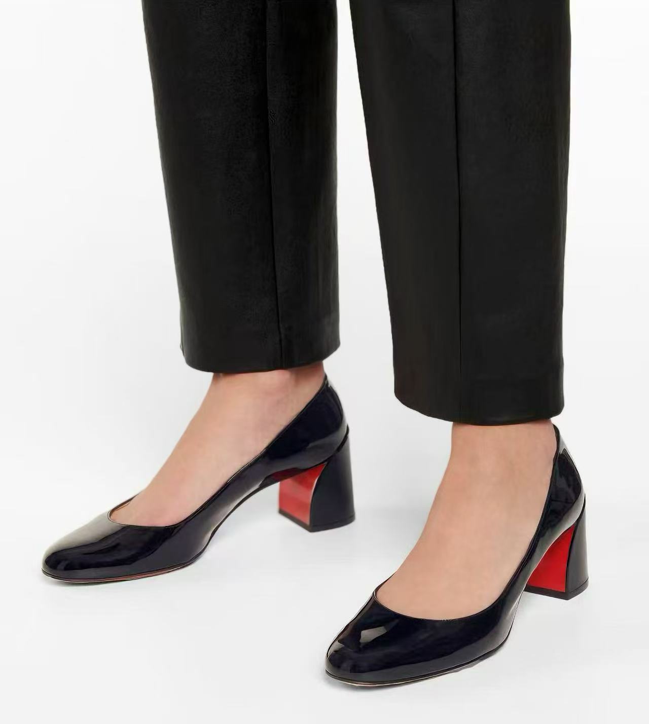 크로스-국경 ACL 레드 슈즈 두꺼운 힐 여성용 하이힐 싱글 슈즈 퍼포먼스 T-스테이지 연회 섹시한 우아한 라운드 발가락 얕은 입 싱글 슈즈스토어 가기