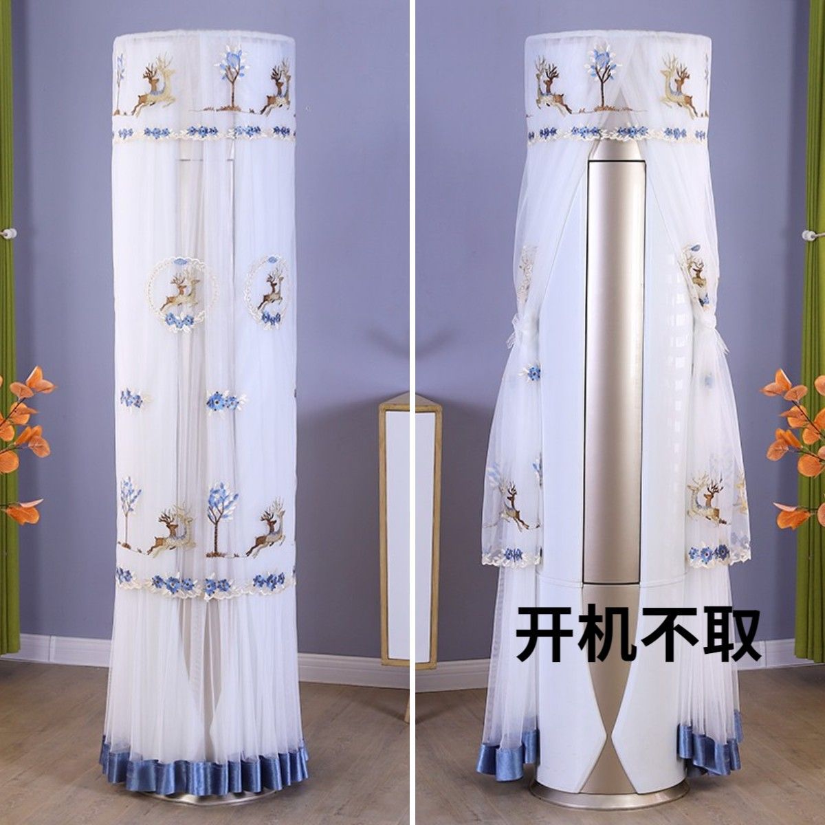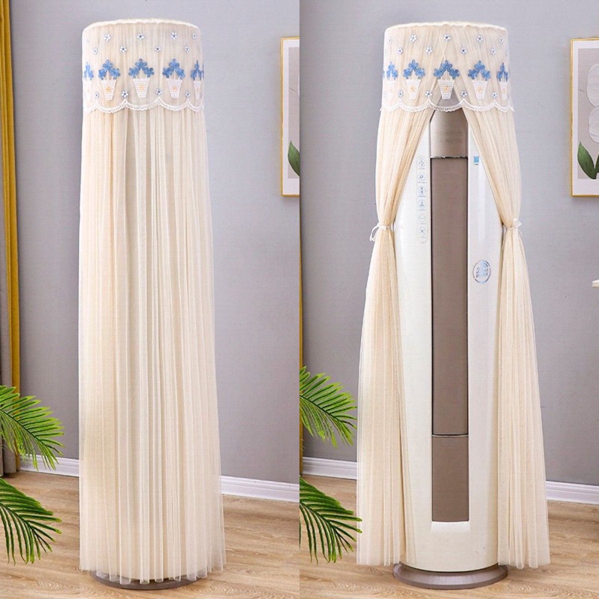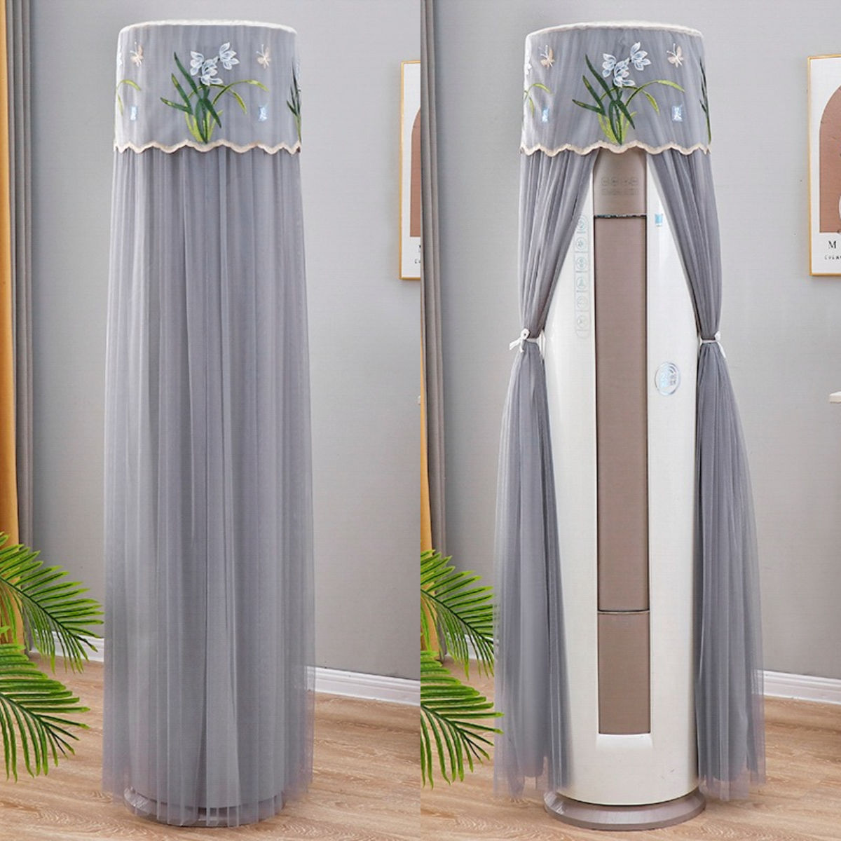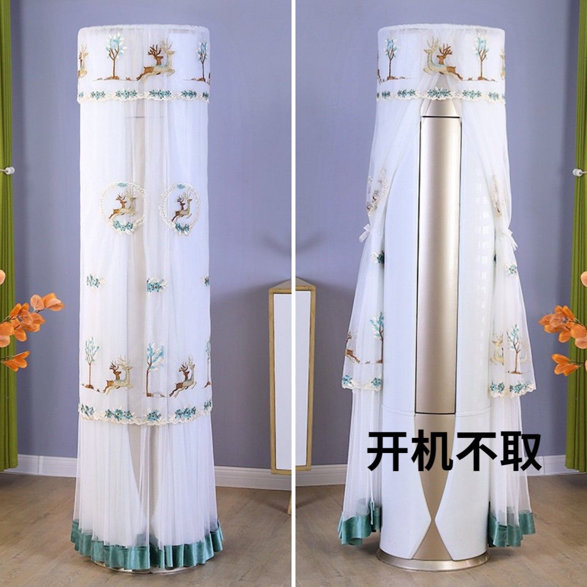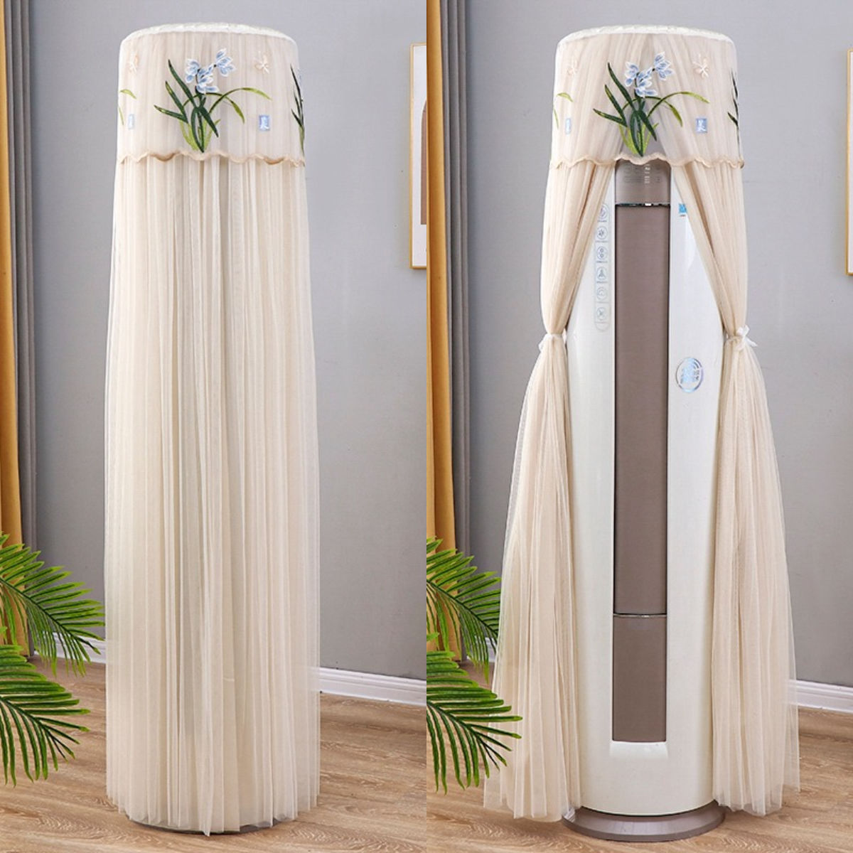 먼지 커버 에어컨 커버 Midea 라운드 오크 수직 에어컨 거실 캐비닛 하이얼 세트 트리 원통형 캐비닛 기계
