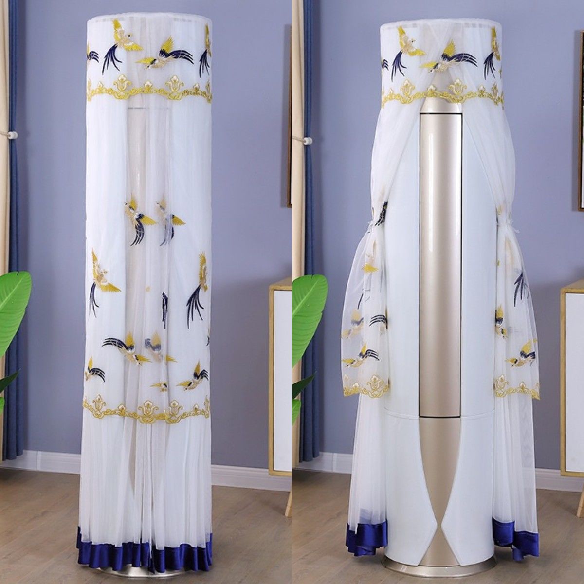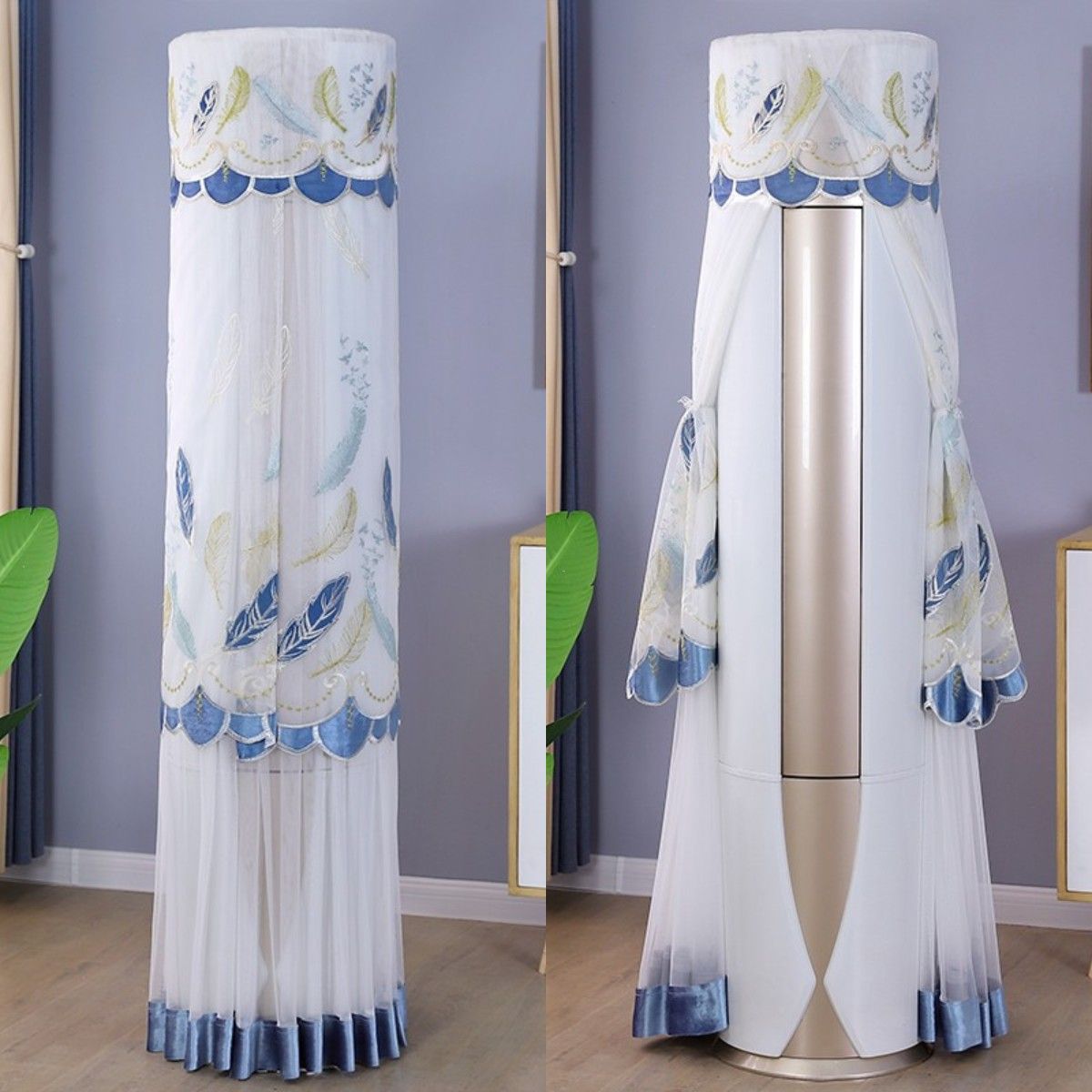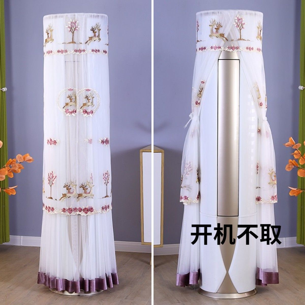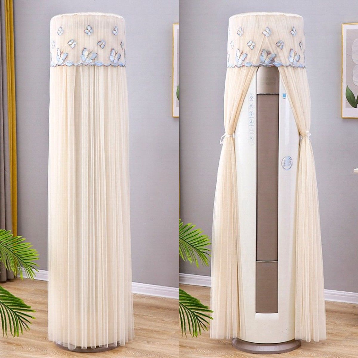 먼지 커버 에어컨 커버 Midea 라운드 오크 수직 에어컨 거실 캐비닛 하이얼 세트 트리 원통형 캐비닛 기계