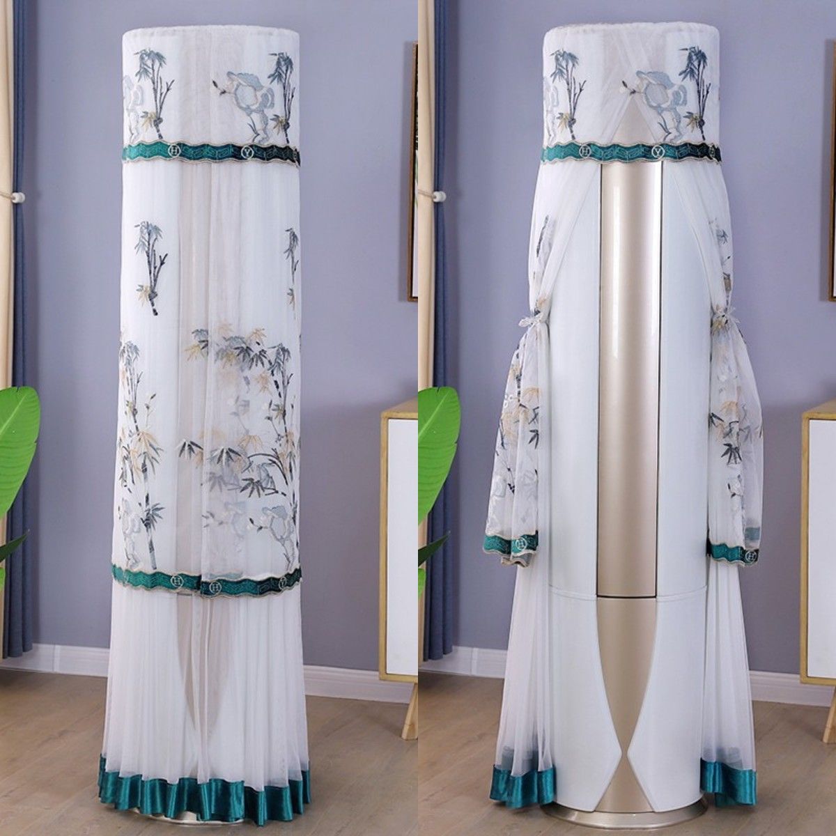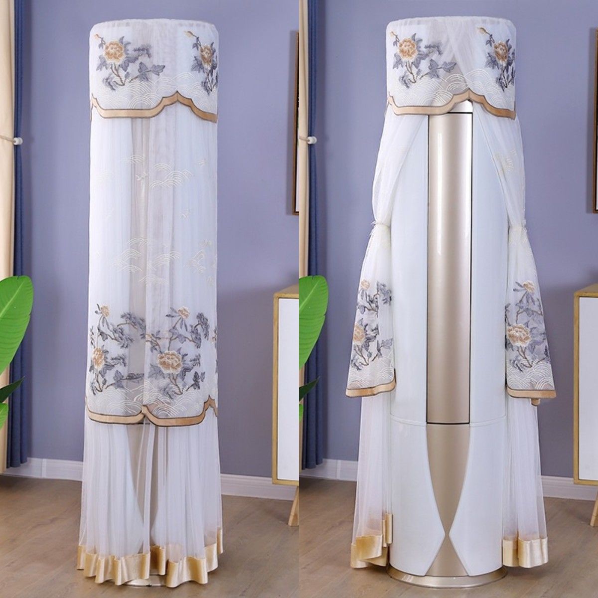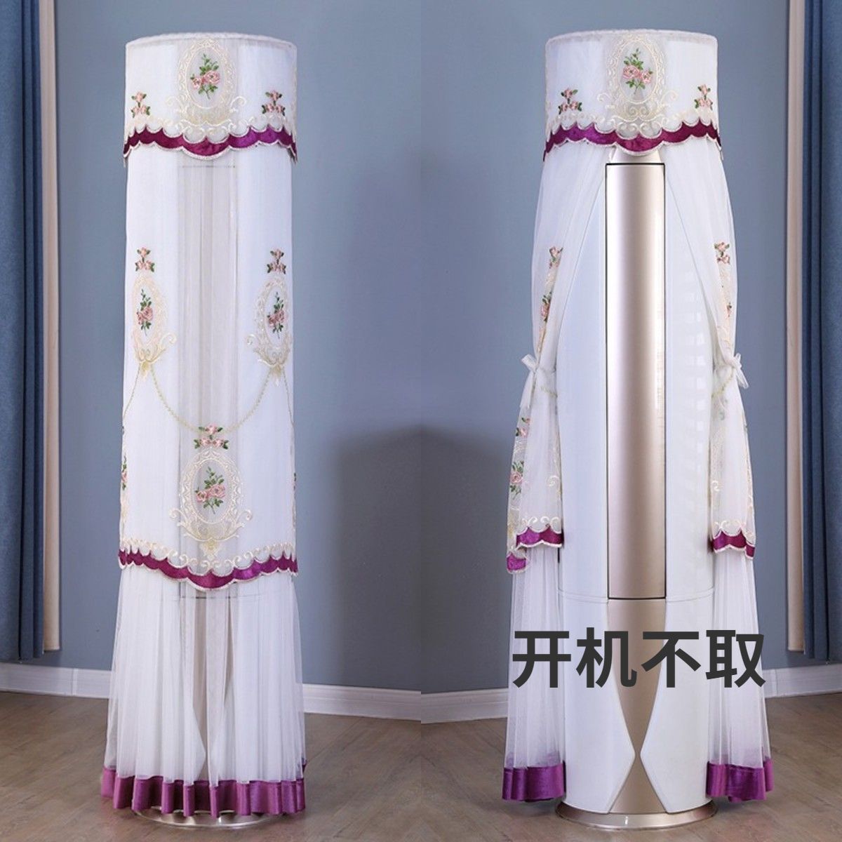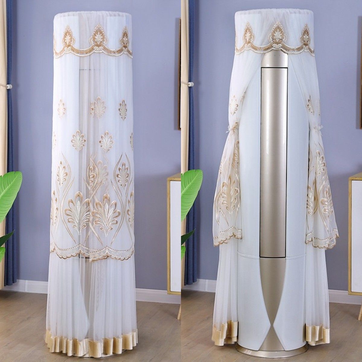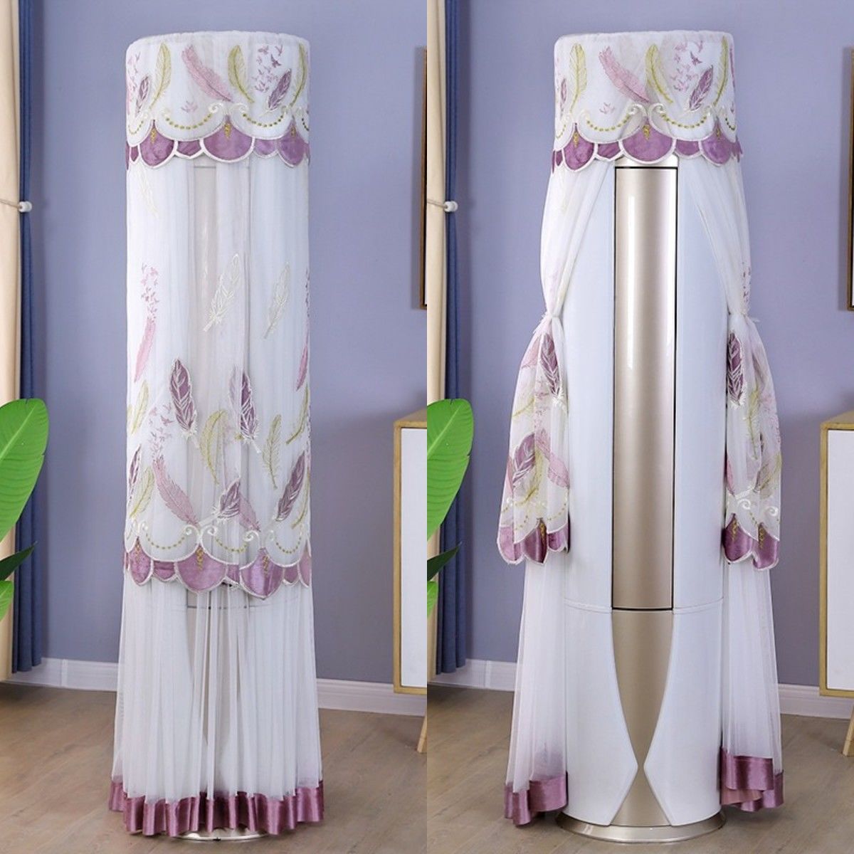 먼지 커버 에어컨 커버 Midea 라운드 오크 수직 에어컨 거실 캐비닛 하이얼 세트 트리 원통형 캐비닛 기계
