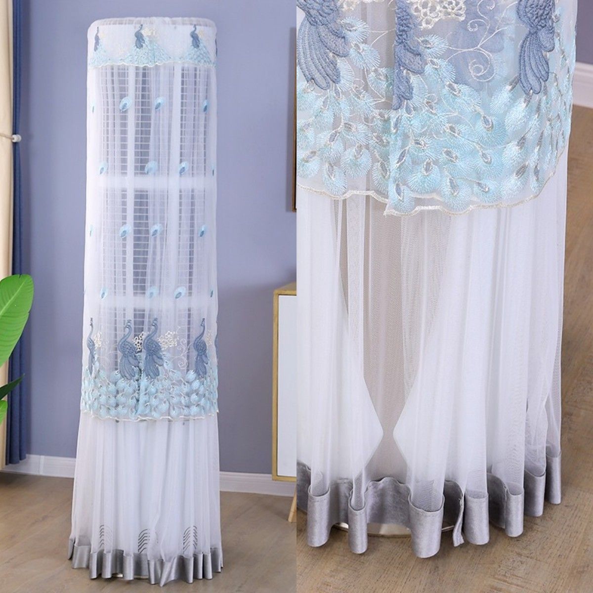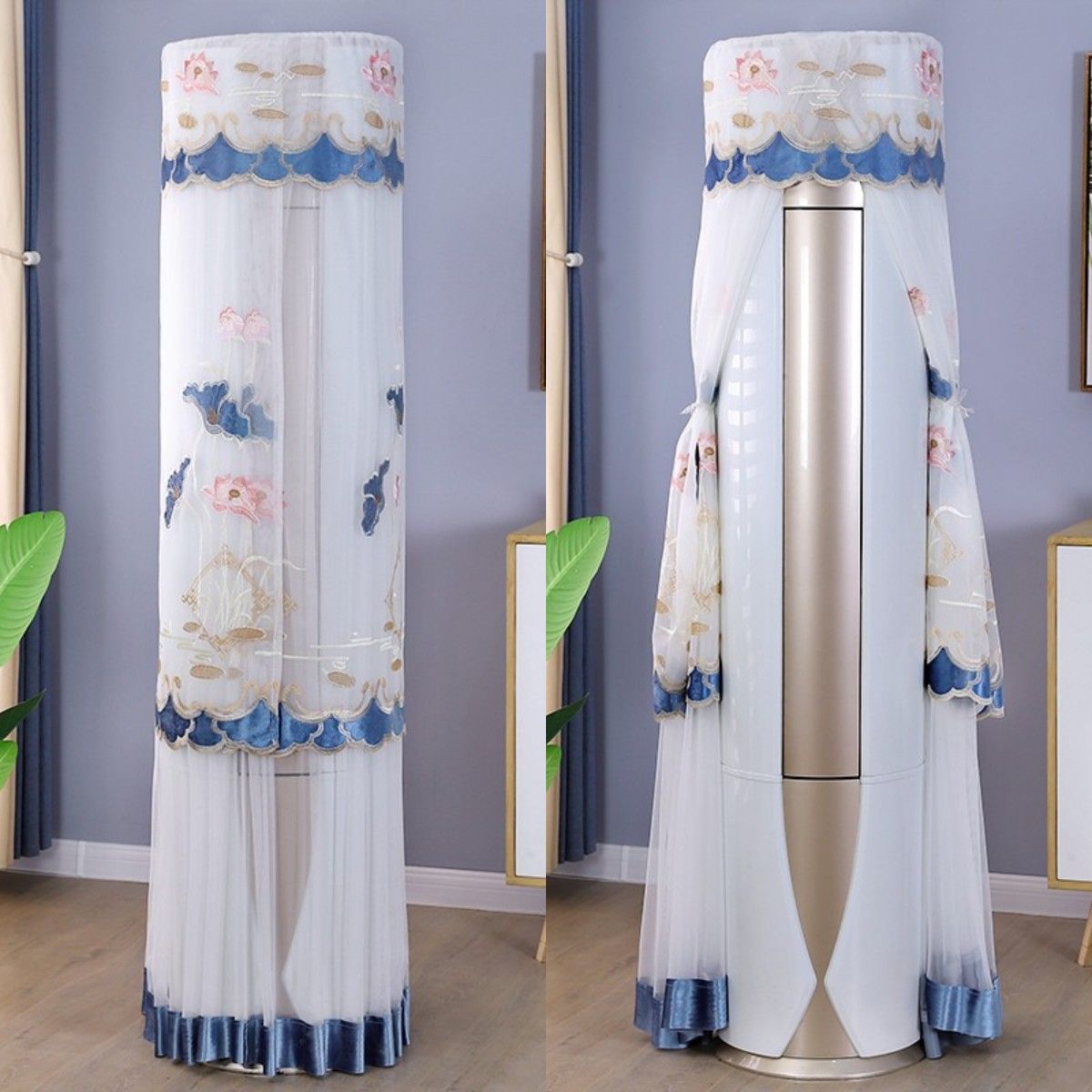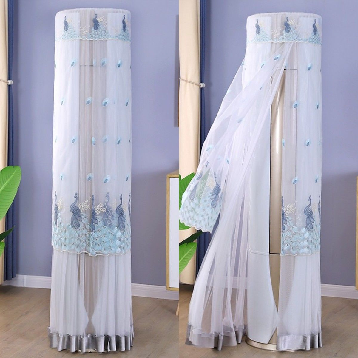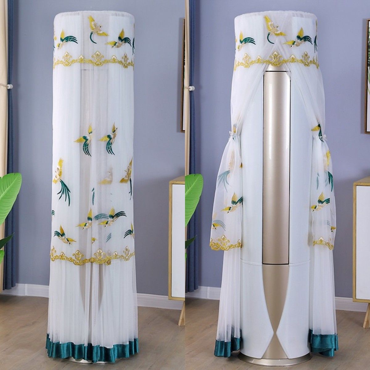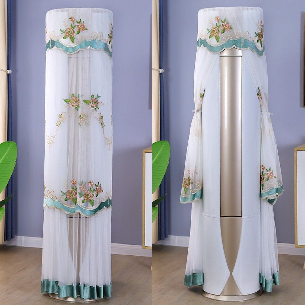 먼지 커버 에어컨 커버 Midea 라운드 오크 수직 에어컨 거실 캐비닛 하이얼 세트 트리 원통형 캐비닛 기계