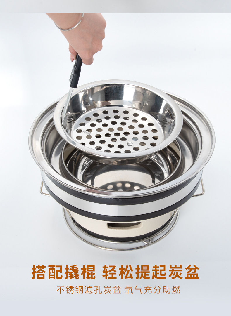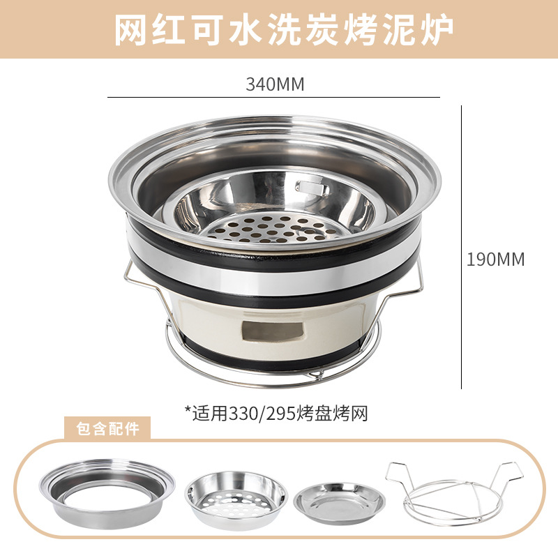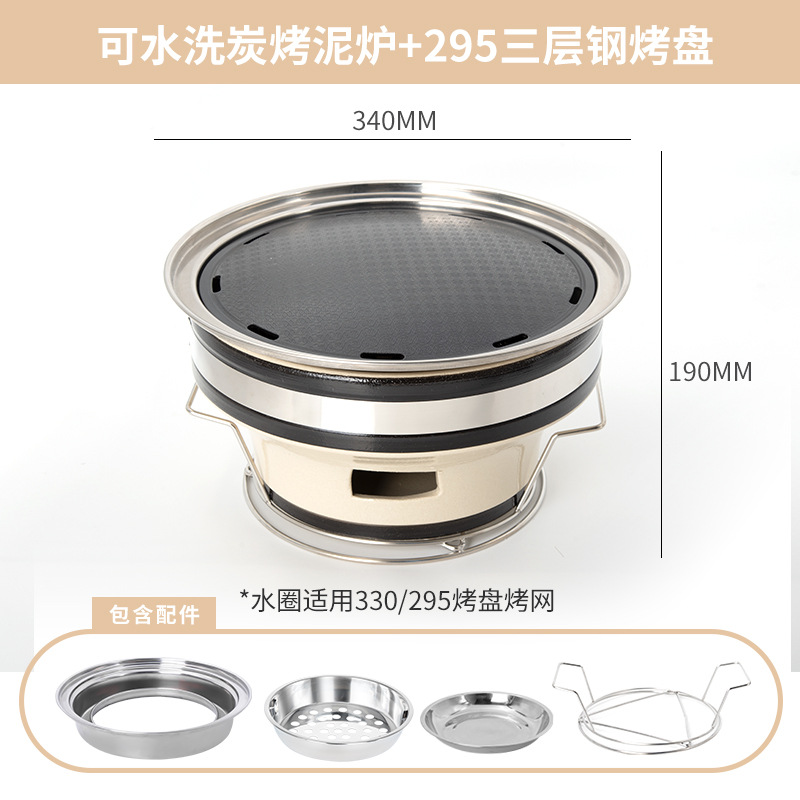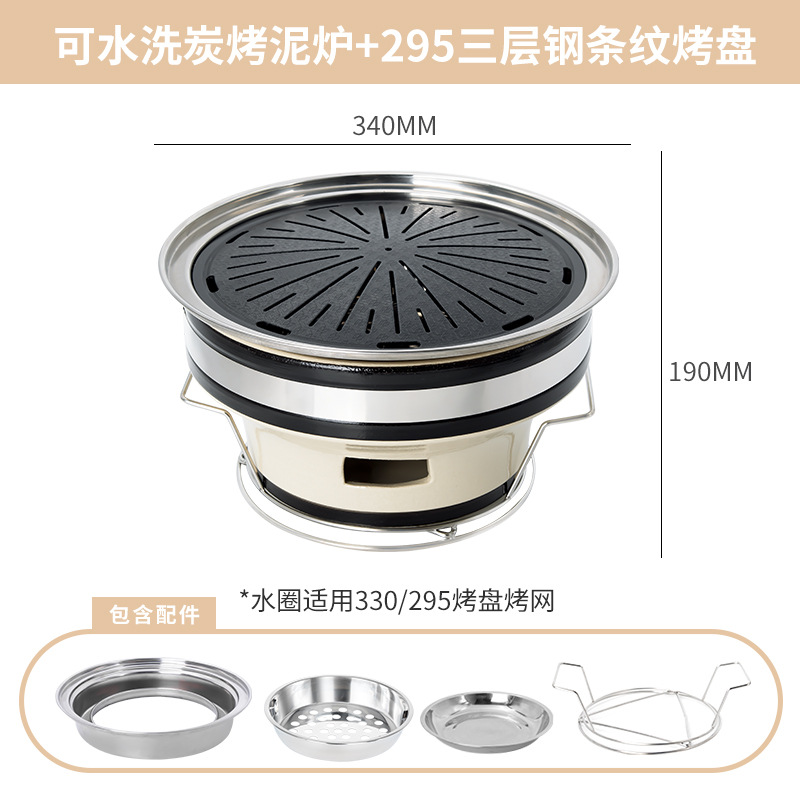 • 세척 가능한 숯불구이 점토 난로 + 295 3층 강철 줄무늬 베이킹 팬