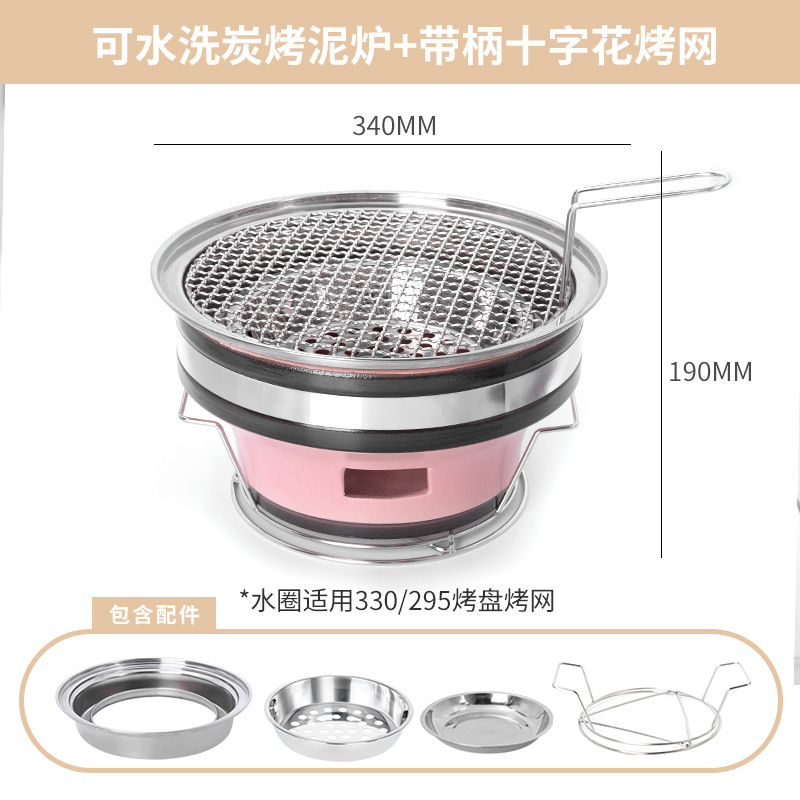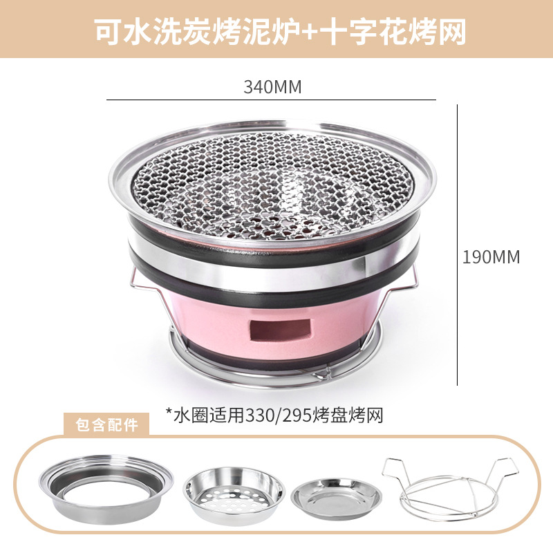 • 핑크 숯불구이 점토 난로 + 십자형 그릴망