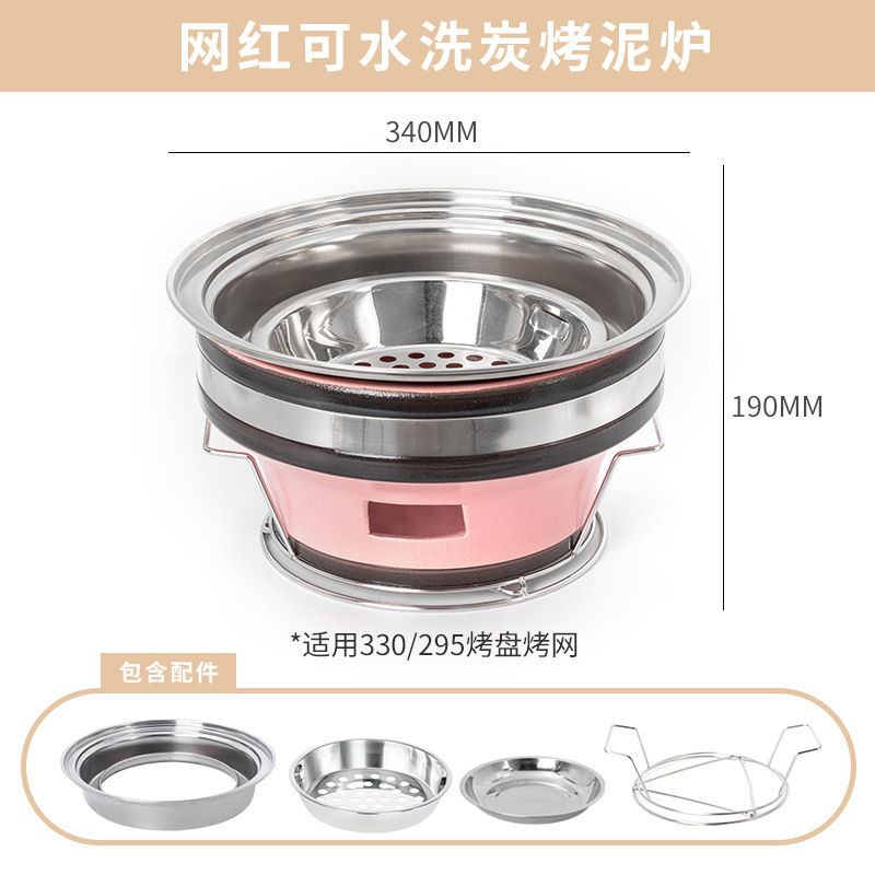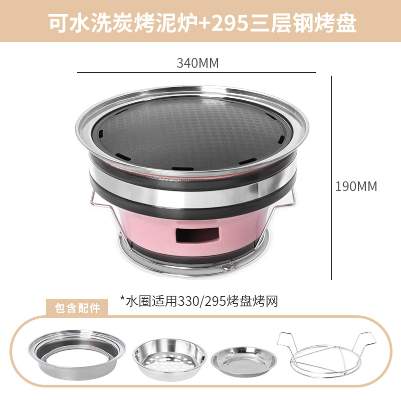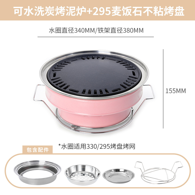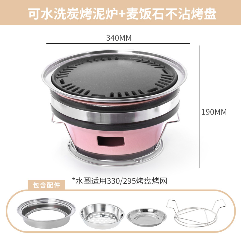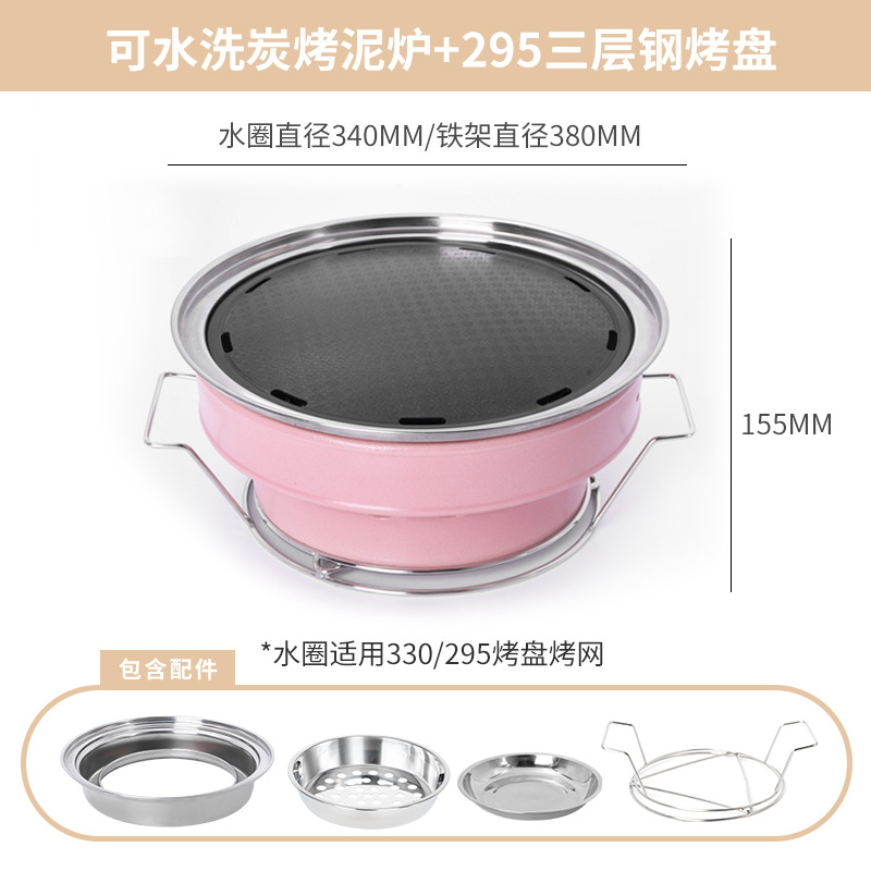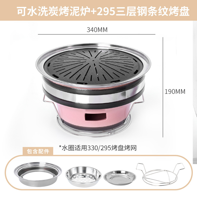• 핑크 숯불구이 점토 난로 + 3겹 강철 줄무늬 베이킹 팬