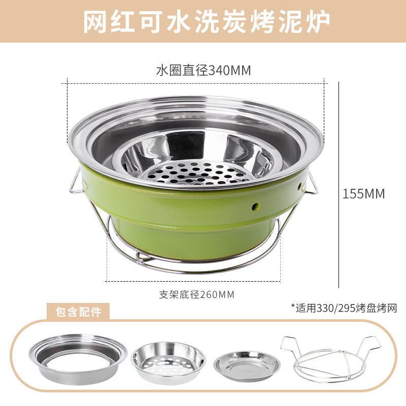 • 세척 가능한 숯불구이 점토 난로 + 295 3층 강철 베이킹 팬