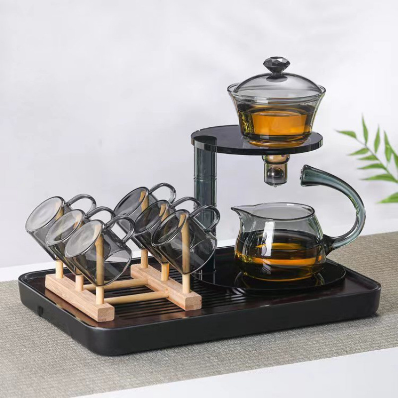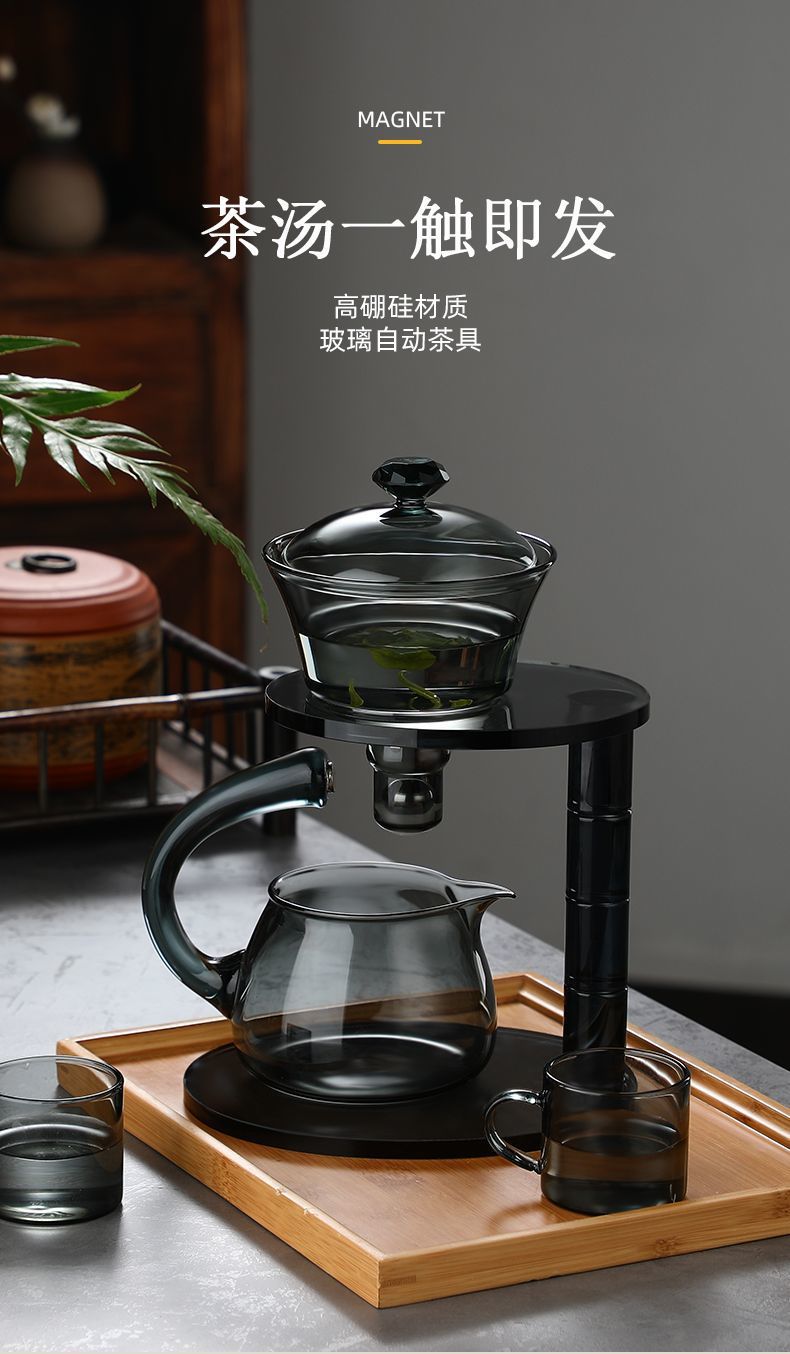 게으른 차 메이커 반자동 차 메이커 투명 유리 주전자 세트 마그네틱 차 세트 전체