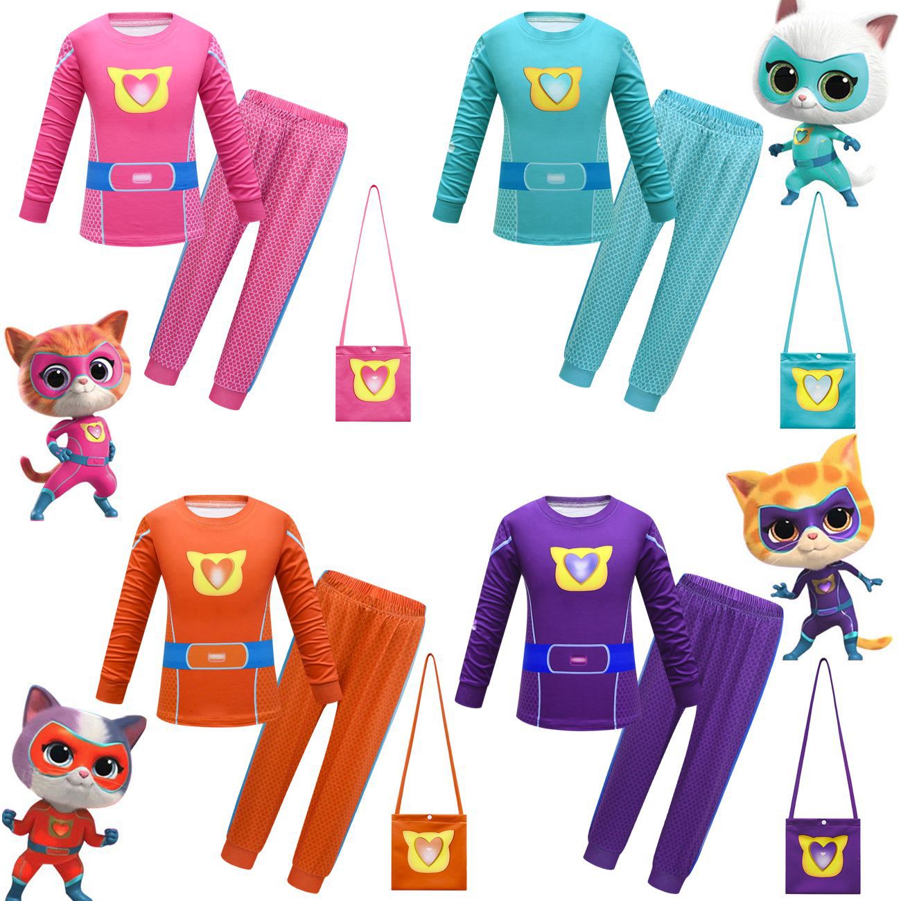 19130 세트 새로운 어린이 2 피스 슈퍼 고양이 슈퍼 고양이 긴 소매 바지스토어 가기