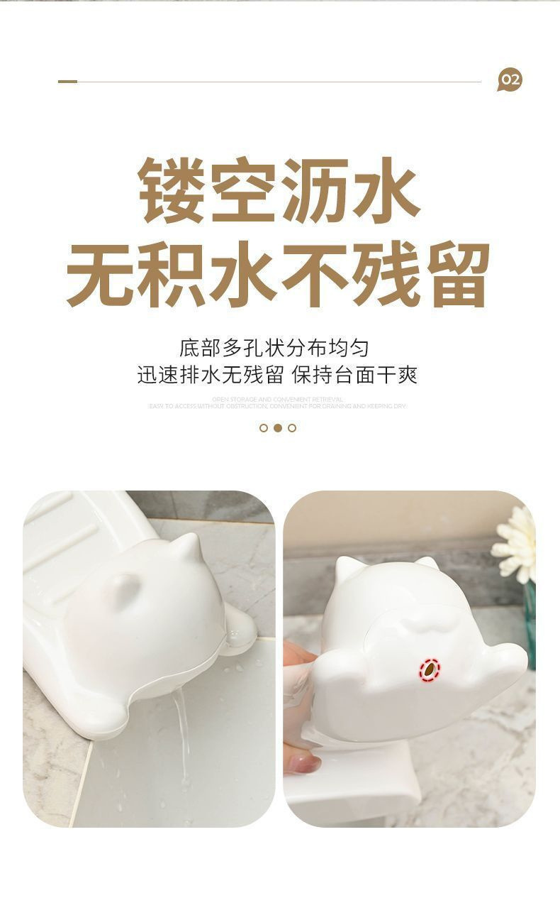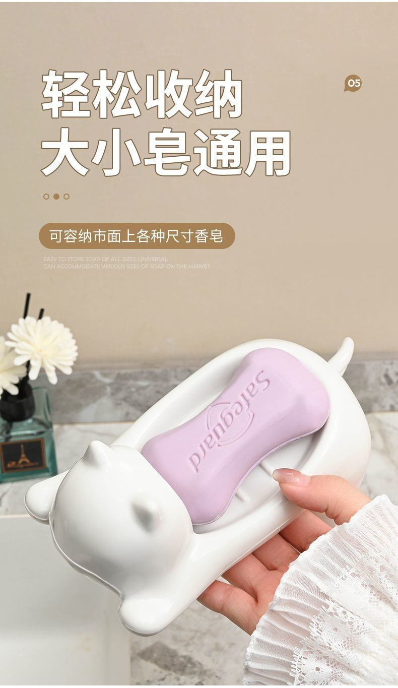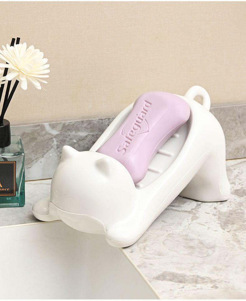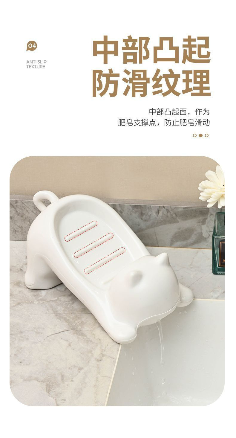 만화 고양이 플라스틱 비누 상자 창조적 인 귀여운 욕실 비누 상자 저장 랙 욕실 배수 비누 접시 홀러