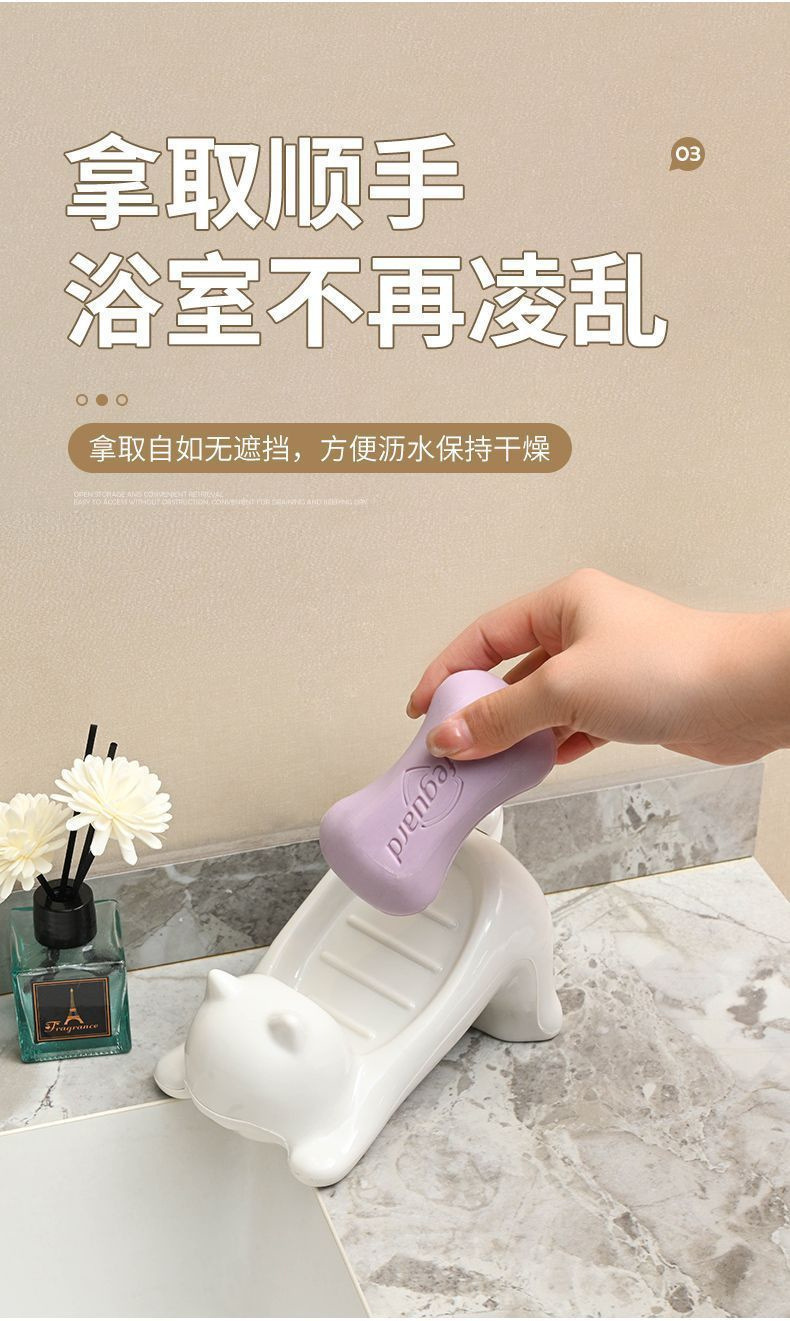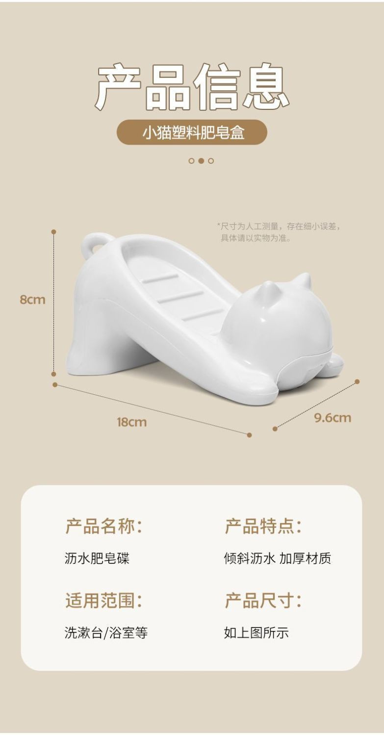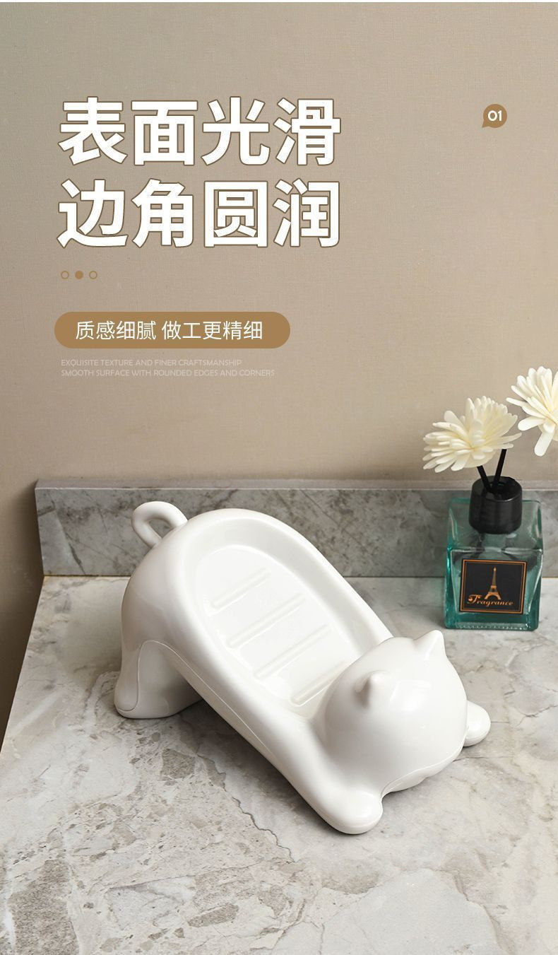 만화 고양이 플라스틱 비누 상자 창조적 인 귀여운 욕실 비누 상자 저장 랙 욕실 배수 비누 접시 홀러