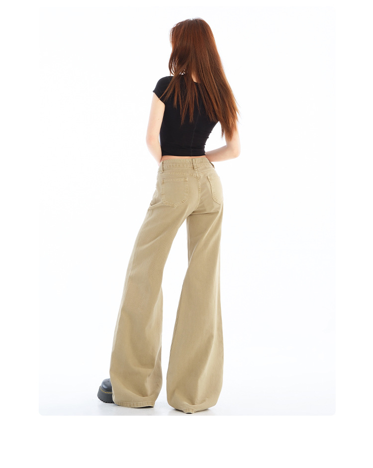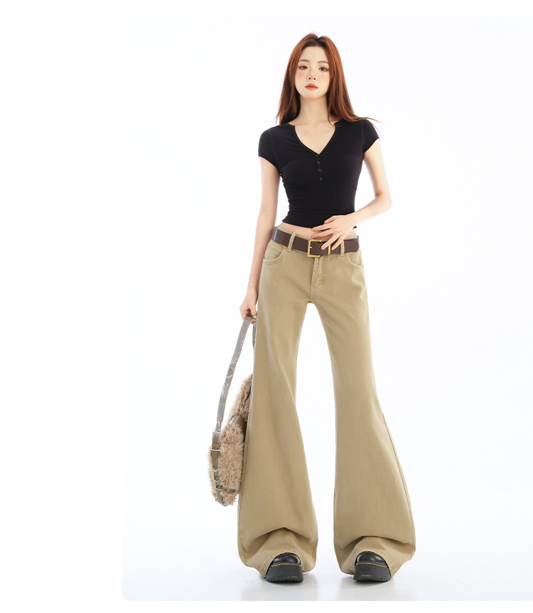 카키색 마이크로 플레어 로우 웨이스트 청바지 여성용 2025 가을 겨울 신상 벨벳 안감 레깅스 느낌 없는 아메리칸 레트로 플레어 팬츠